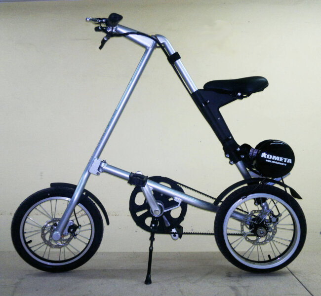 На фото складной дорожный велосипед Аутор, независимо от установленного двигателя, останется велосипедом с признаками несоответствия требованиям Основных положений по допуску к эксплуатации ТС ПДД в тот момент, когда будет двигаться  по ДОП.