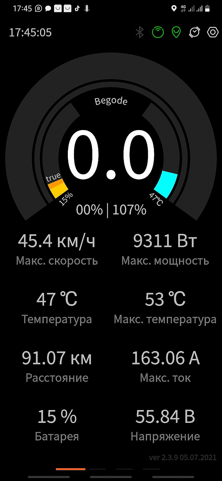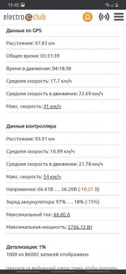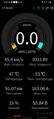 лог с колеса. скорость такая видимо как раз во время падения зафиксирована так же как цифра 107% - это как раз превышение оборотов двигателя, контроллер развивает 100% грубо говоря, а 107% это я ему "помог". алгоритмы колеса отключают двигатель в случае достижения максимальных оборотов, т к считается что эта ситуация, когда райдер все равно уже упал.