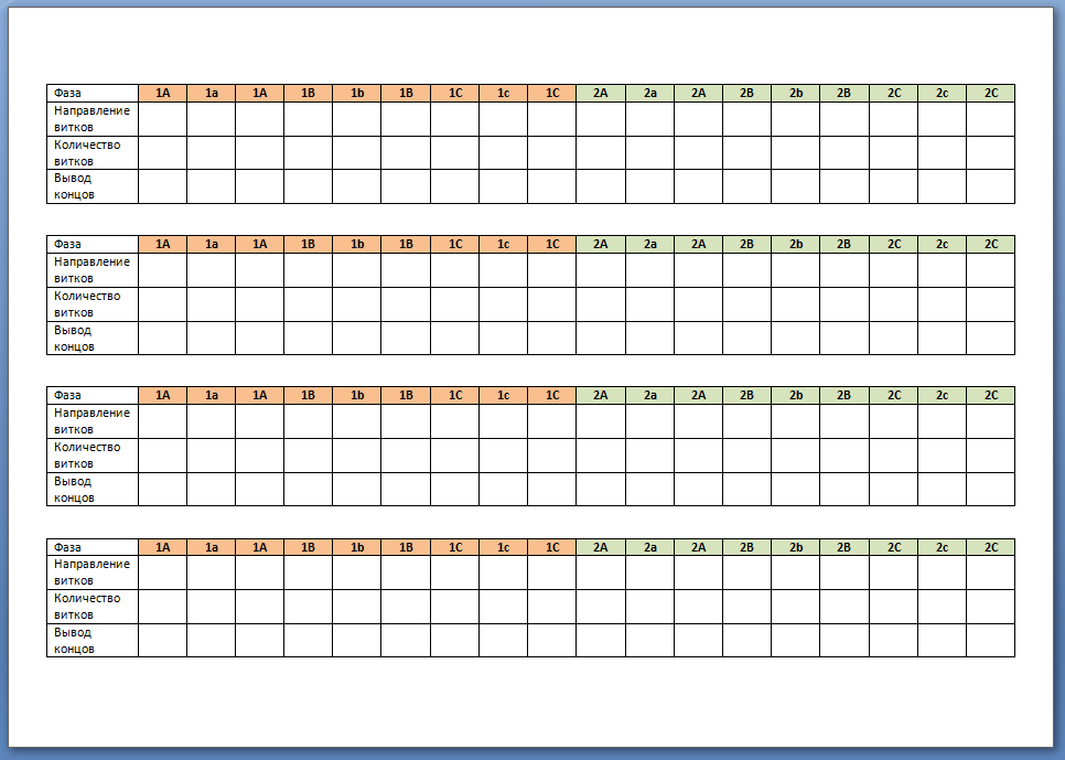типа, Фаза 1, группа 1, зуб 1 2 3, направление намотки, кол-во витков.