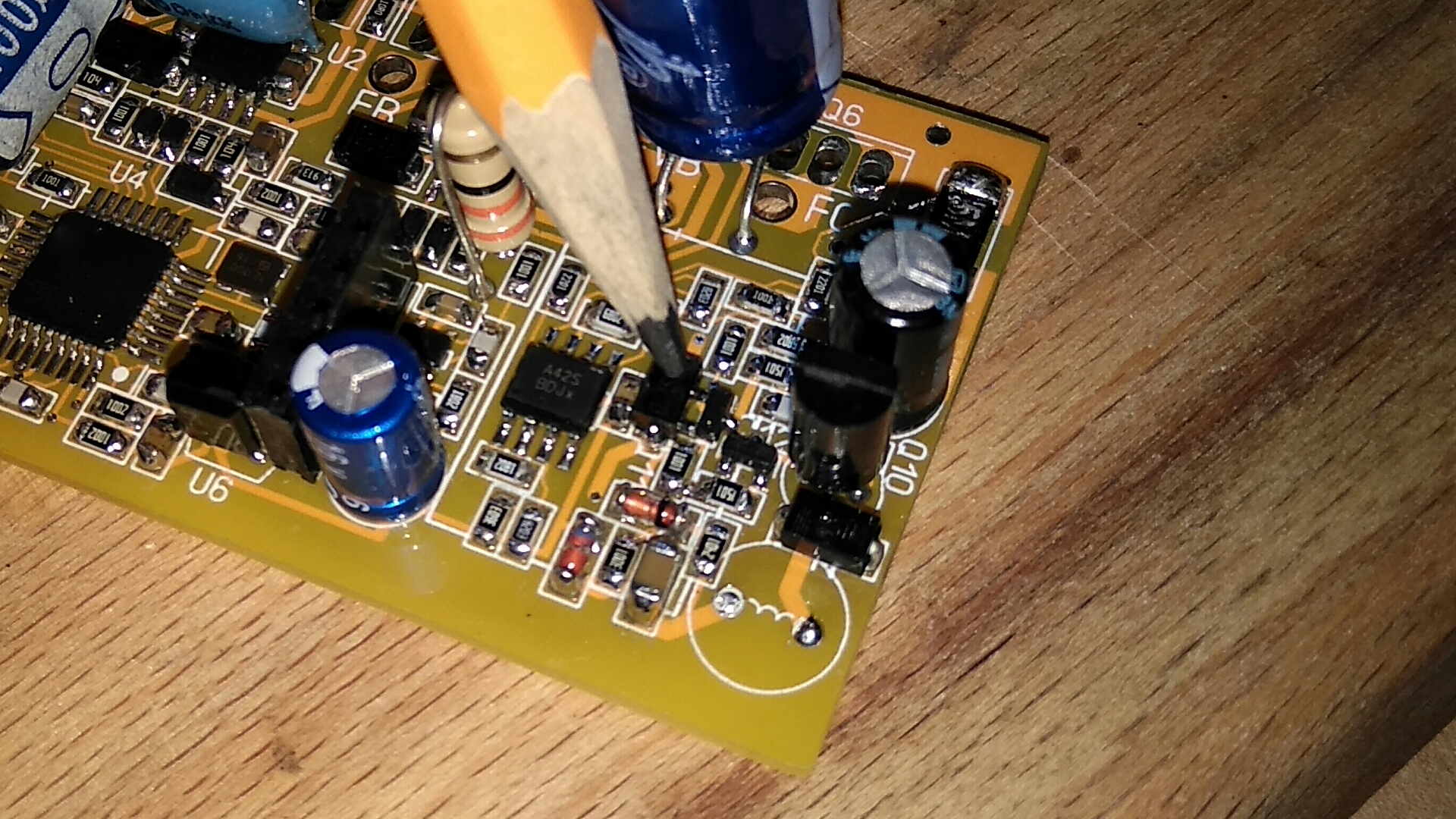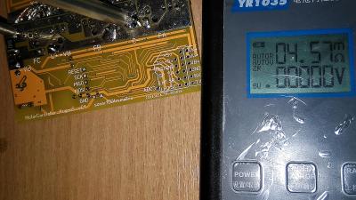 На плате находятся два пятивольтовых контакта, но один из них идёт через резистор в 10R: