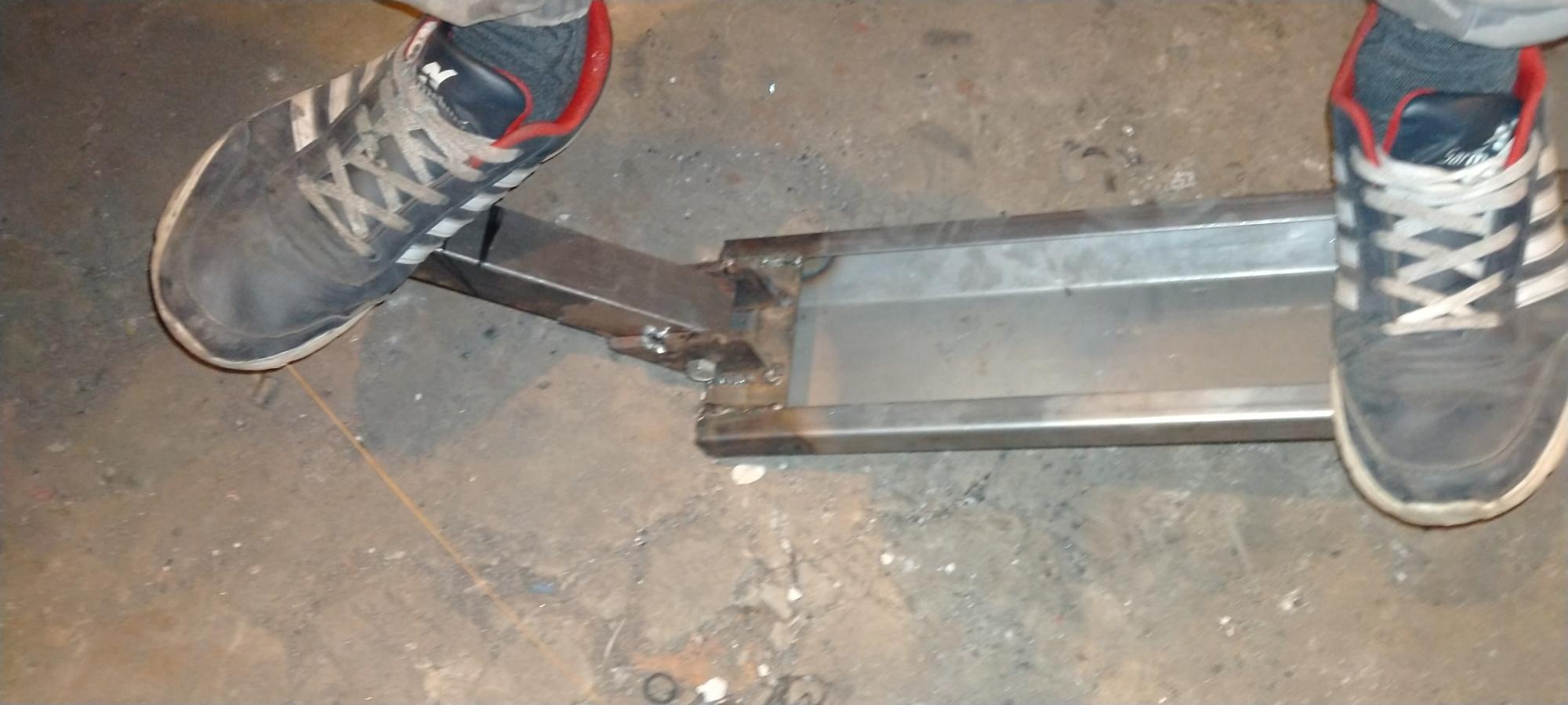 Пока вес 4кг всего металла + труба руля, пружина, колеса, батарея, 10-12кг в итоге должно выйти