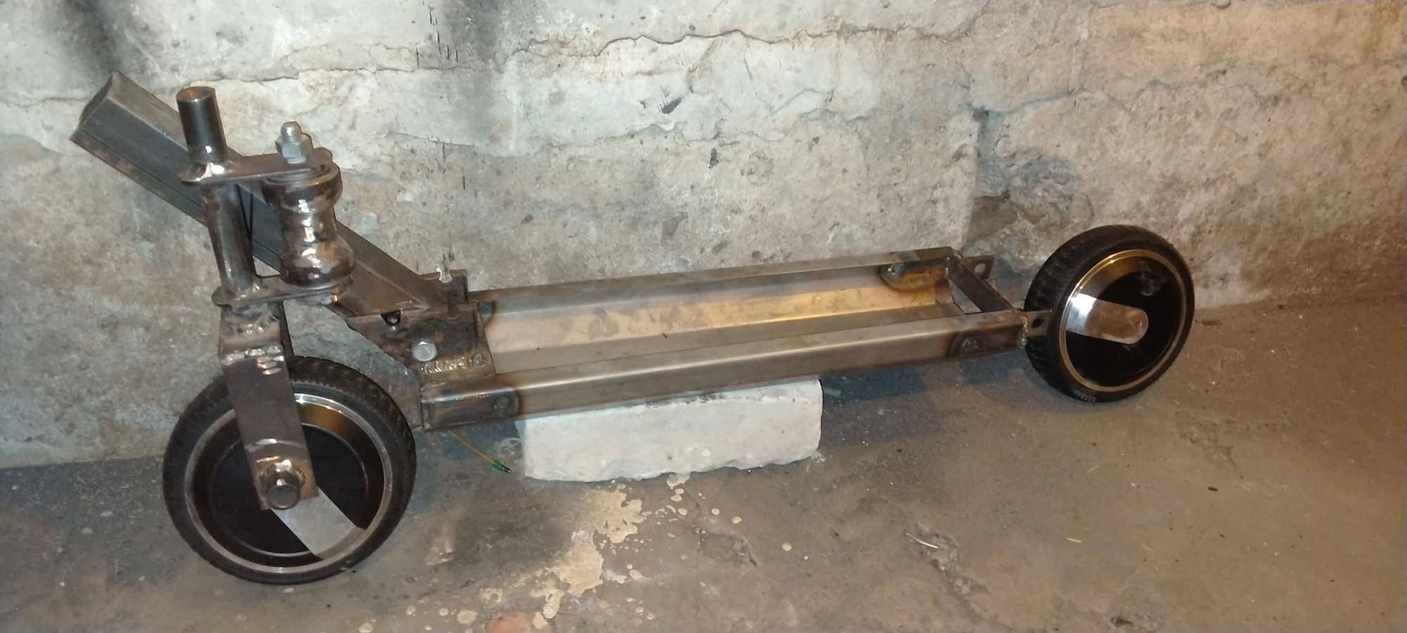 Любопытный самокатик.. Похоже получится маленький, но крепенький и тяжеленький...