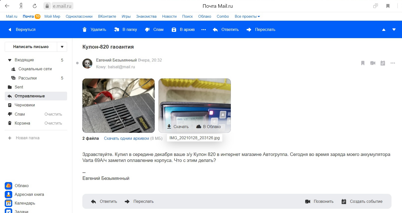 Когда я отправил письмо: