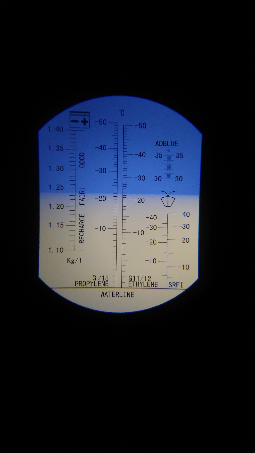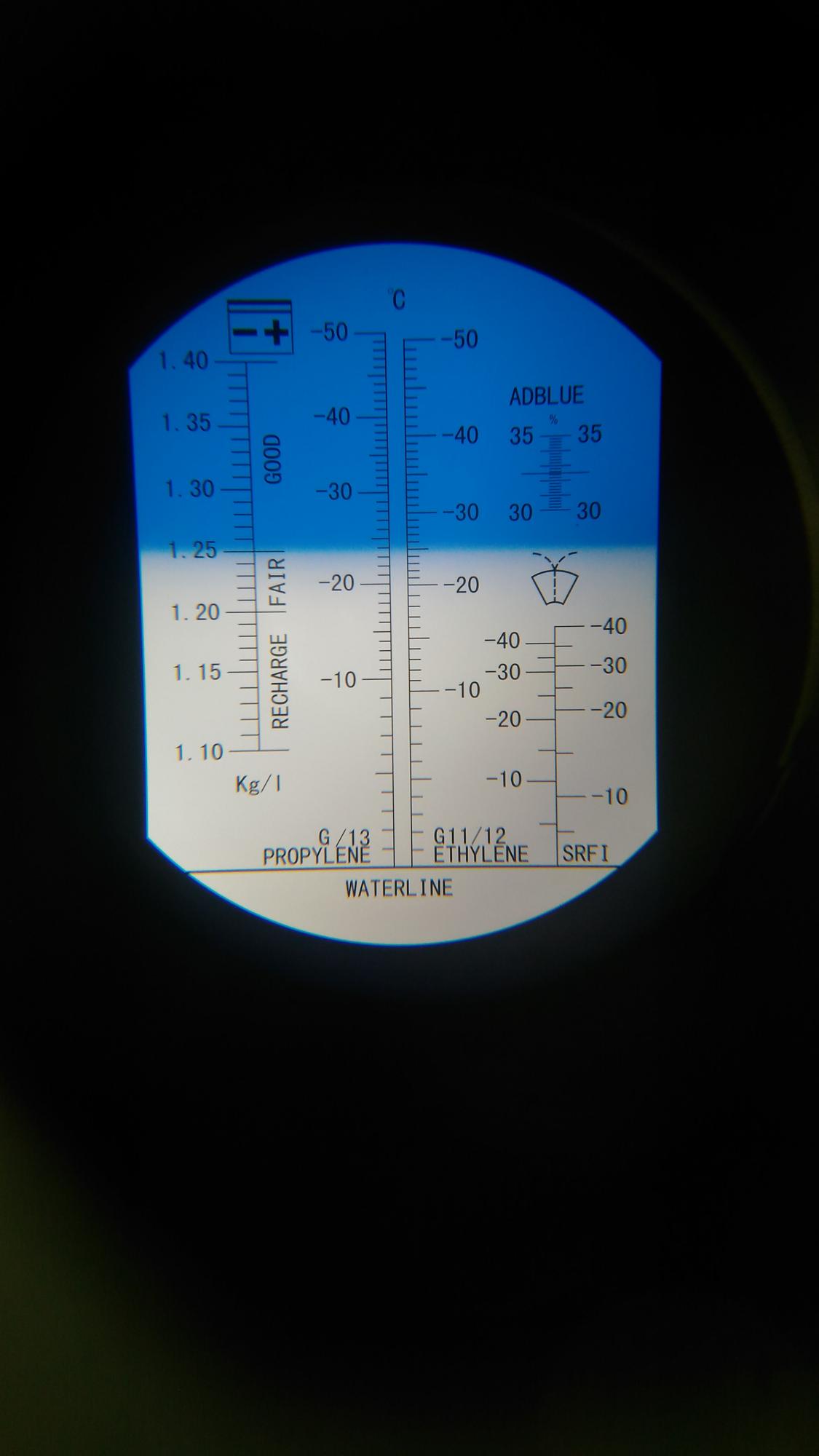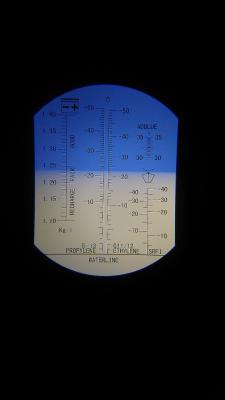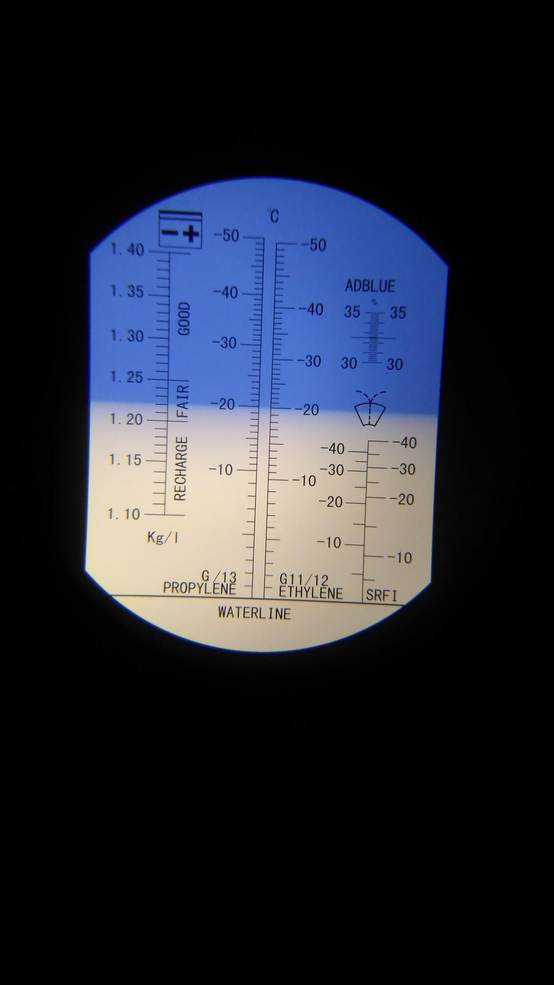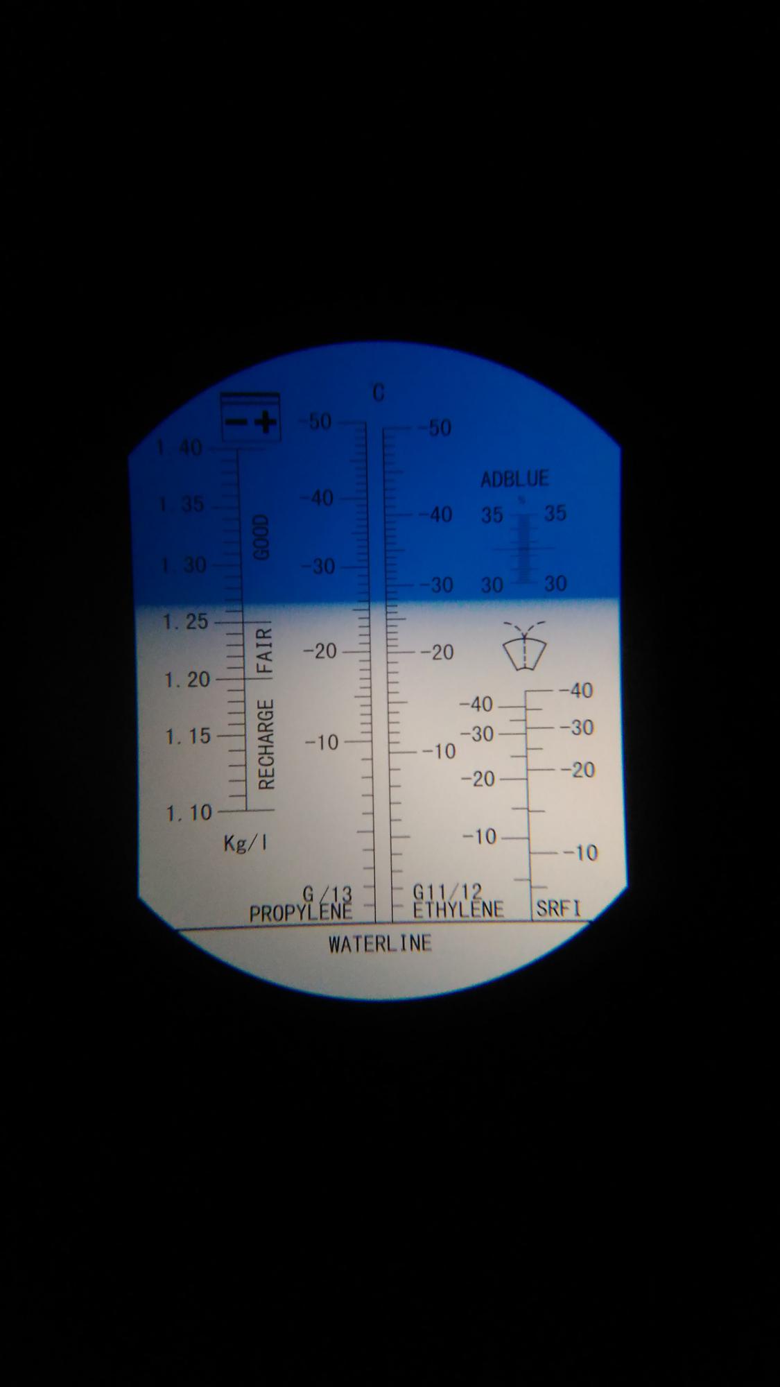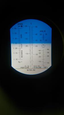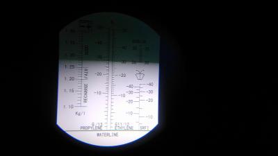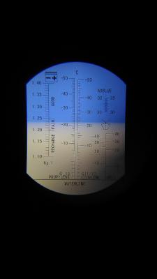 Через 1ч сделан забор электролита над пластинами 1 и 4 банка от плюса, показания рефрактометра ниже, температура в помещении 28,5°C, плотность 1,215 и 1,22 соответственно.