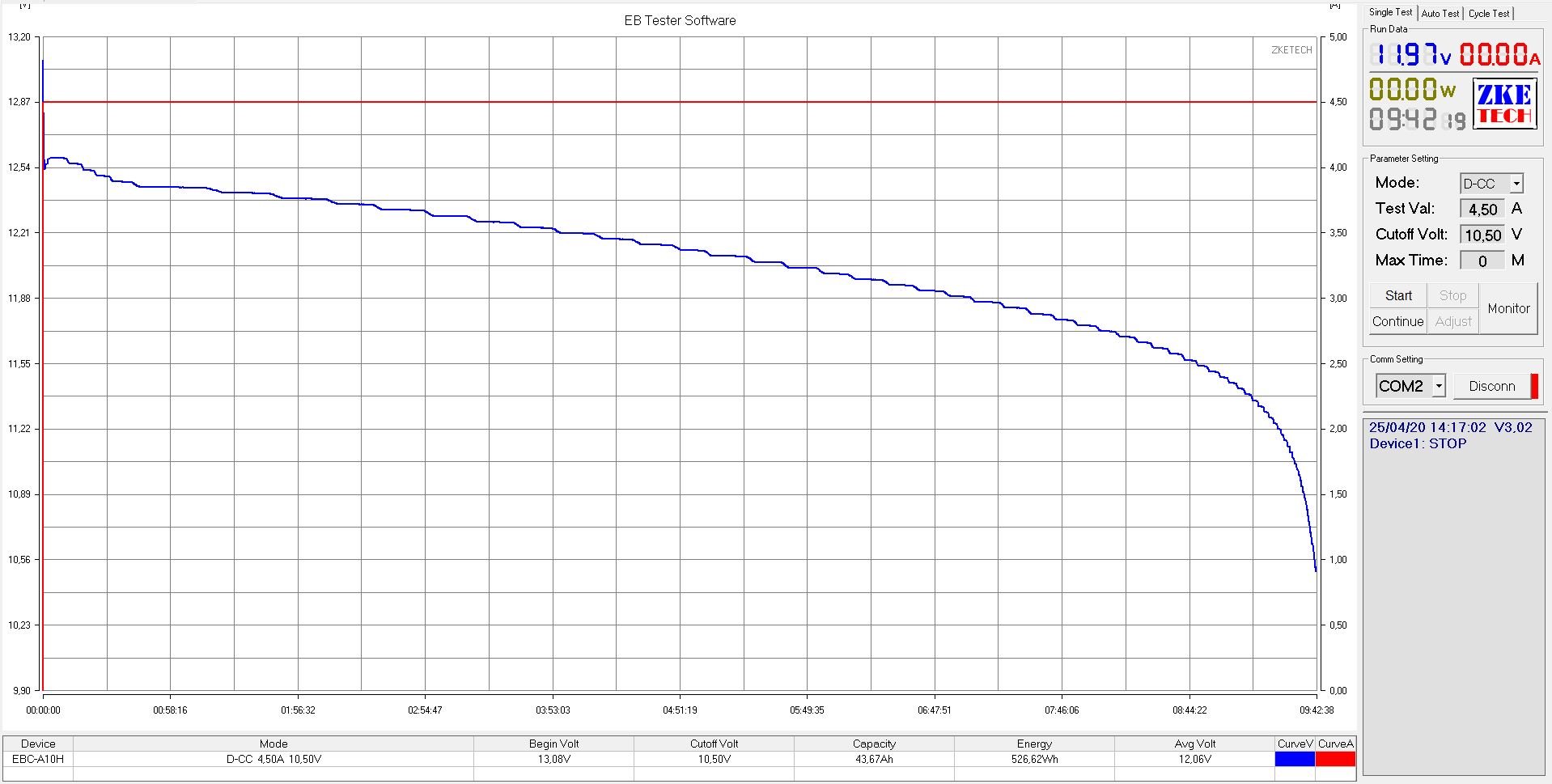 [b-b]UPD 25.04.2020 [/b-b] Результаты КТЦ 43,67Ah или 526.62Wh, до 12в отдал 27,63Ah = 58.01%