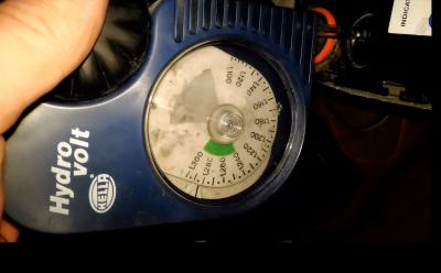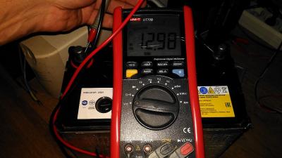 Произведён замер плотности выборочно в двух банках 1я от плюсовой клеммы и 4я от неё плотность 1,28 и 1,29 соответственно (сотки округлил), плюс замер тестером.