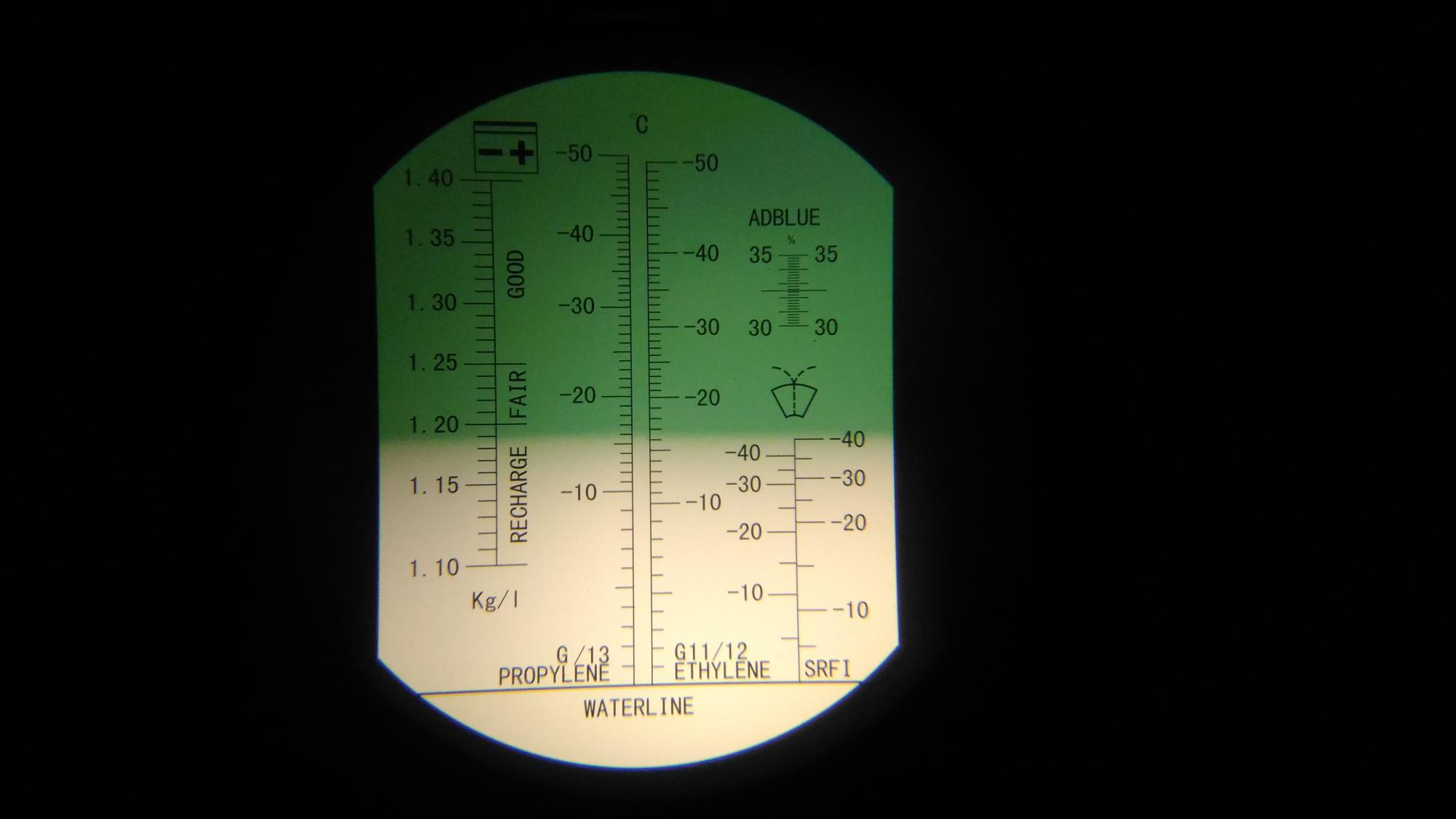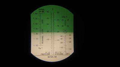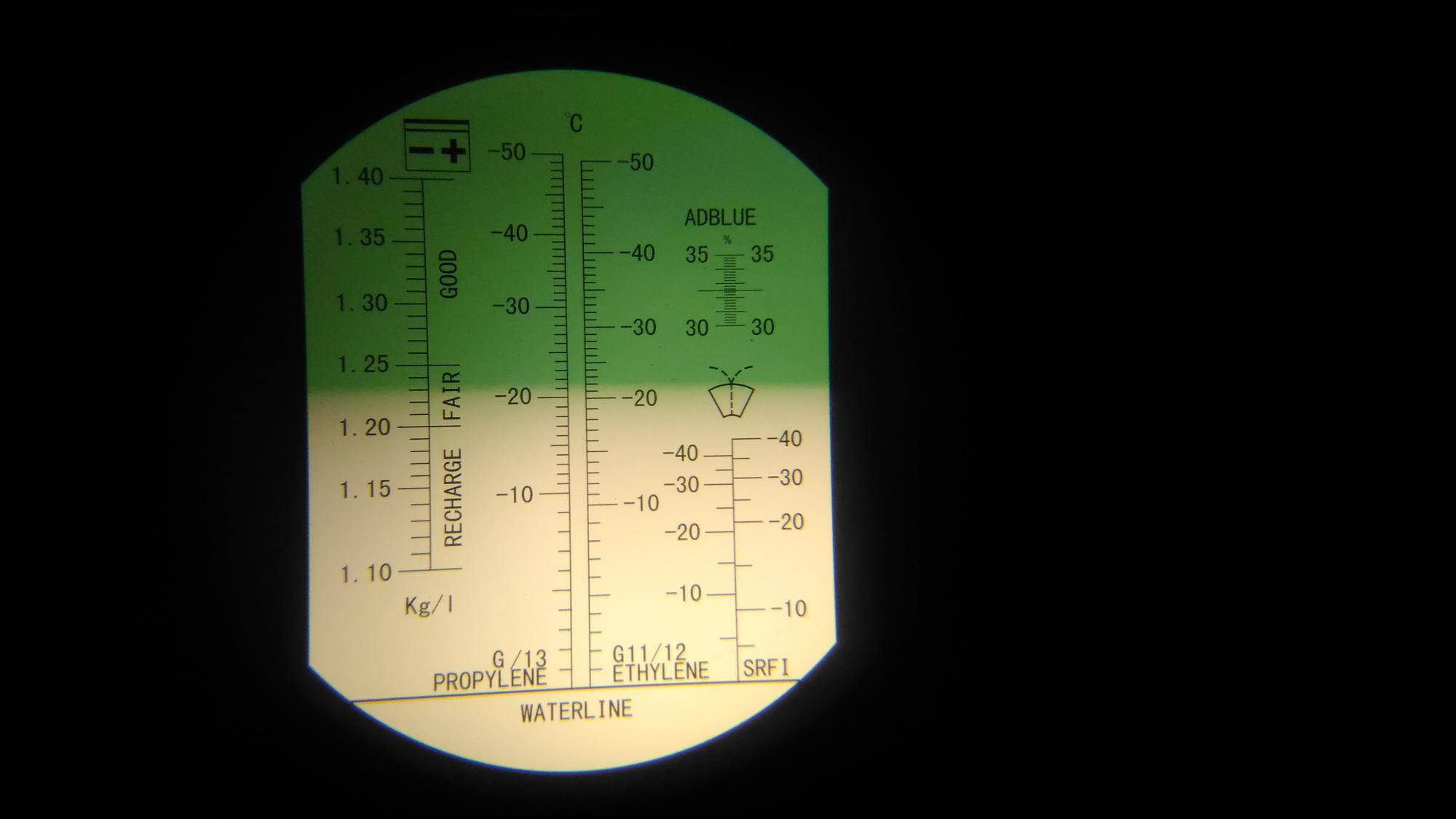 Через час после отключения зарядного произведён забор электролита над пластинами и замер плотности при помощи рефрактометра с термокомпенсацией при температуре 29°C, дальнейшие измерения плотности будут производится им.