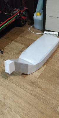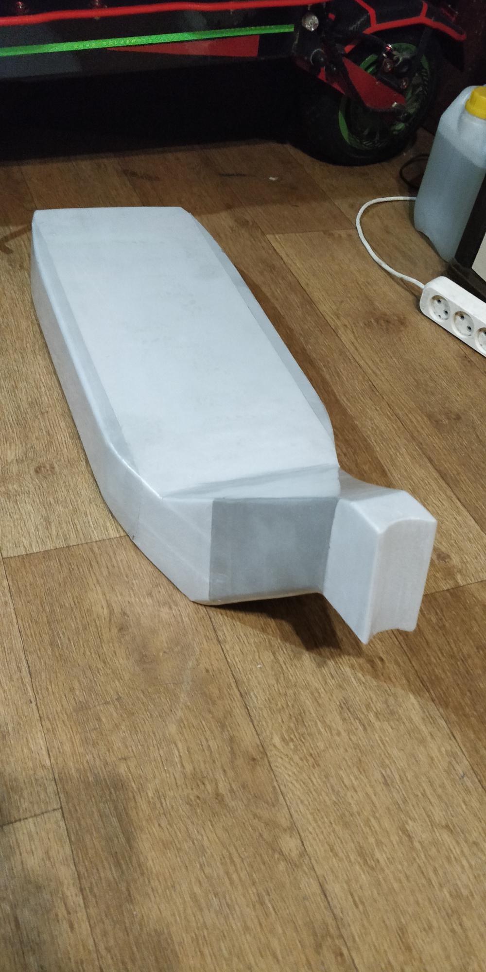 из технологических соображений в данном варианте не может применяться другая технология кроме выше описанной ,т.к в домашних условиях не представляется возможность сделать разборную матрицу таких обводов,а жесткость и прочность без сильного увеличения веса будет достигаться за счёт бутерброда где внутренний слой будет из полиэфирного сотового волокна,таким образом толщина стенки будет не меньше 8мм