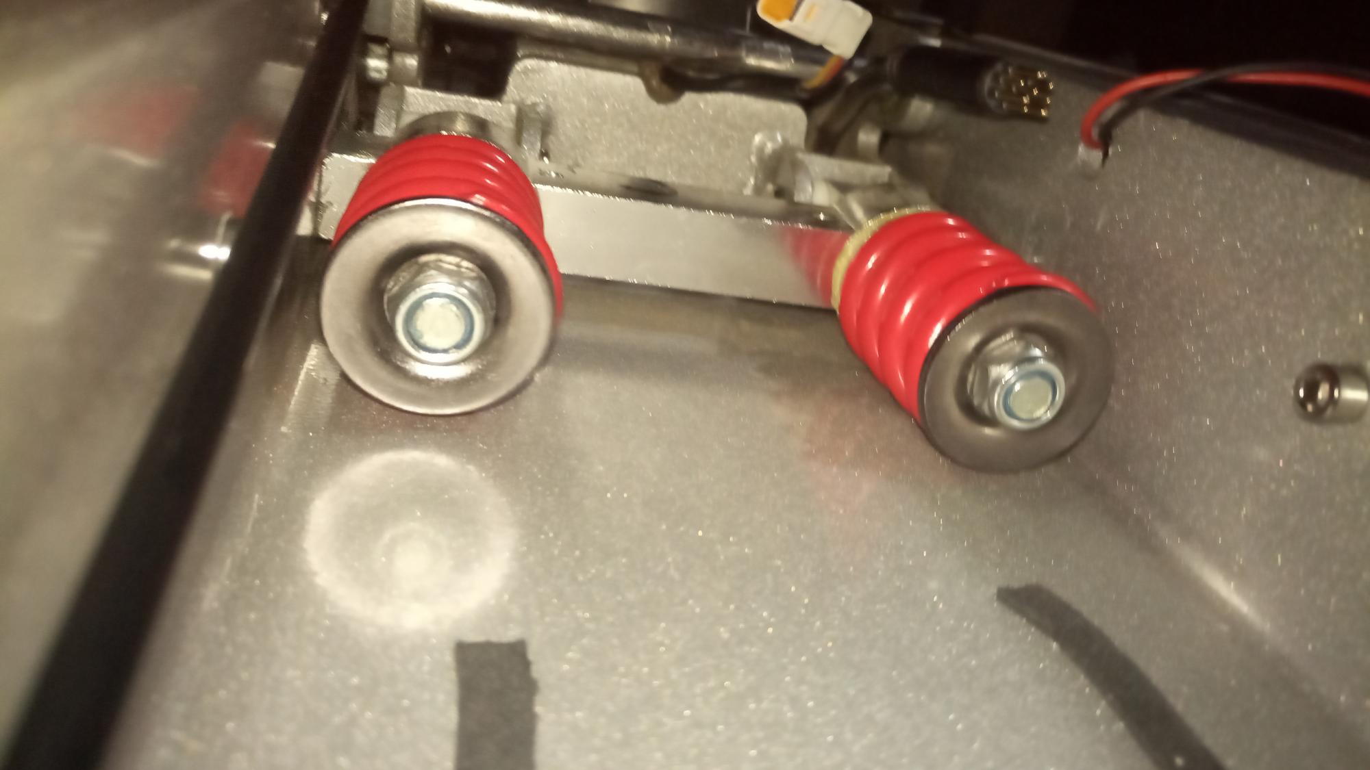 Переднее немного сложнее, закрепил через отверстия в рычагах к которым раньше крепились фары и ось крепления амортизаторов. Всё на пластиковых стяжках