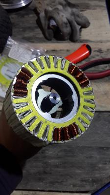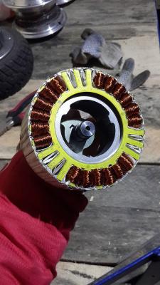 [user]_Os[/user], Из расчета что было 13 где то 14 витков на зуб проводом 0,5 в 4 жилы, т.е. в пазу с одной стороны было 52 -56 жил, я решил мотать 6 жил значит 9 витков будет как раз 54 жилы ну и по максимуму забить медью пазы. Покрышки на него заказал от квадроцикла 145/70-6 думаю должно быть норм.