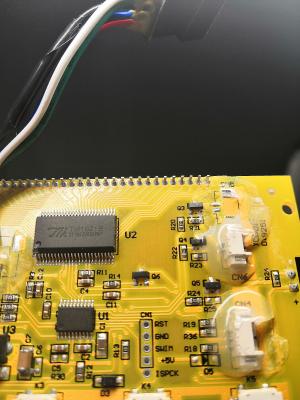 Желтый в переходнике, который тянется по всему рулю. В контроллере синий. Там все заводское. От q6 и до сн5 видны потемнения дорог внутри платы, но не уверен, влияет ли это.