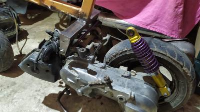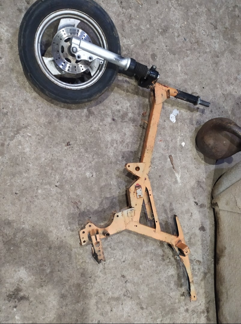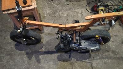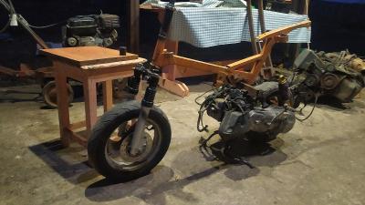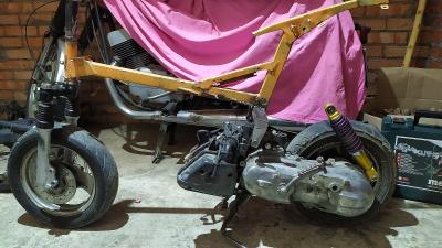 Продолжается изжопотвление. Выставил раму, сварил крепление мотора, завтра, мб, буду приваривать к раме и ставить амортизатор. Если успею, то попробую накинуть бак и руль.