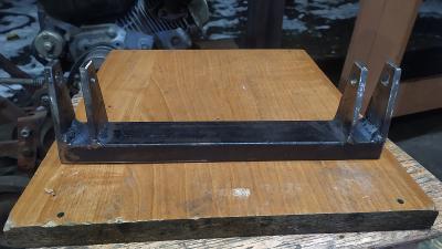 Сегодня выпилил ушки и перекладину. Проблема, конечно, будет сделать квадрат в 5мм каленой стали, но, думаю, возможно. И сверлится это дело так себе. Потом решу как крепить аморт, а то он один и находится НЕ посередине...
