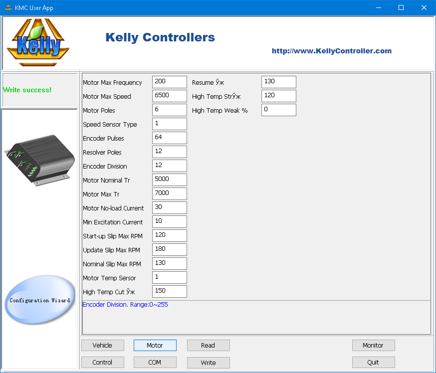 Я поменяла подключение фазных проводов на правильное - от этого ещё хуже стал крутиться. Потом полезла в настройки контроллера и увидела что контроллер не настроен. Motor Poles  =6, Encoder Pulses =64 - эти параметры понятны, но их настройка не помогла, мне не ясен смысл других параметров: Resolver Poles, Encoder division. Мануал читала — не поняла что такое «The pair pole number*2».