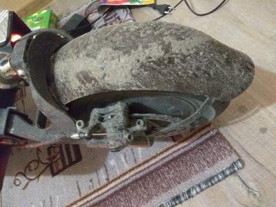 Прохожу обкатку потихоньку уже километров 200 проехал пока вроде ничего не развалилось потеплеет надо будет покрасить. Из недостатков отломалось крепление переднего болотника (из мебельного уголочка) при очередном прыжке с бордюра (пластик из водосточки все же очень крепкий) сделал из 2мм нержавейки. Задний болотник знатно бился об колесо не каждой кочке пришлось сделать дополнительную поддержку. При езде в непогоду вылезла неприятность тормозной диск не хило закидывает грязь на штанину и вот почему-то болотники все в грязи может кто знает почему?
