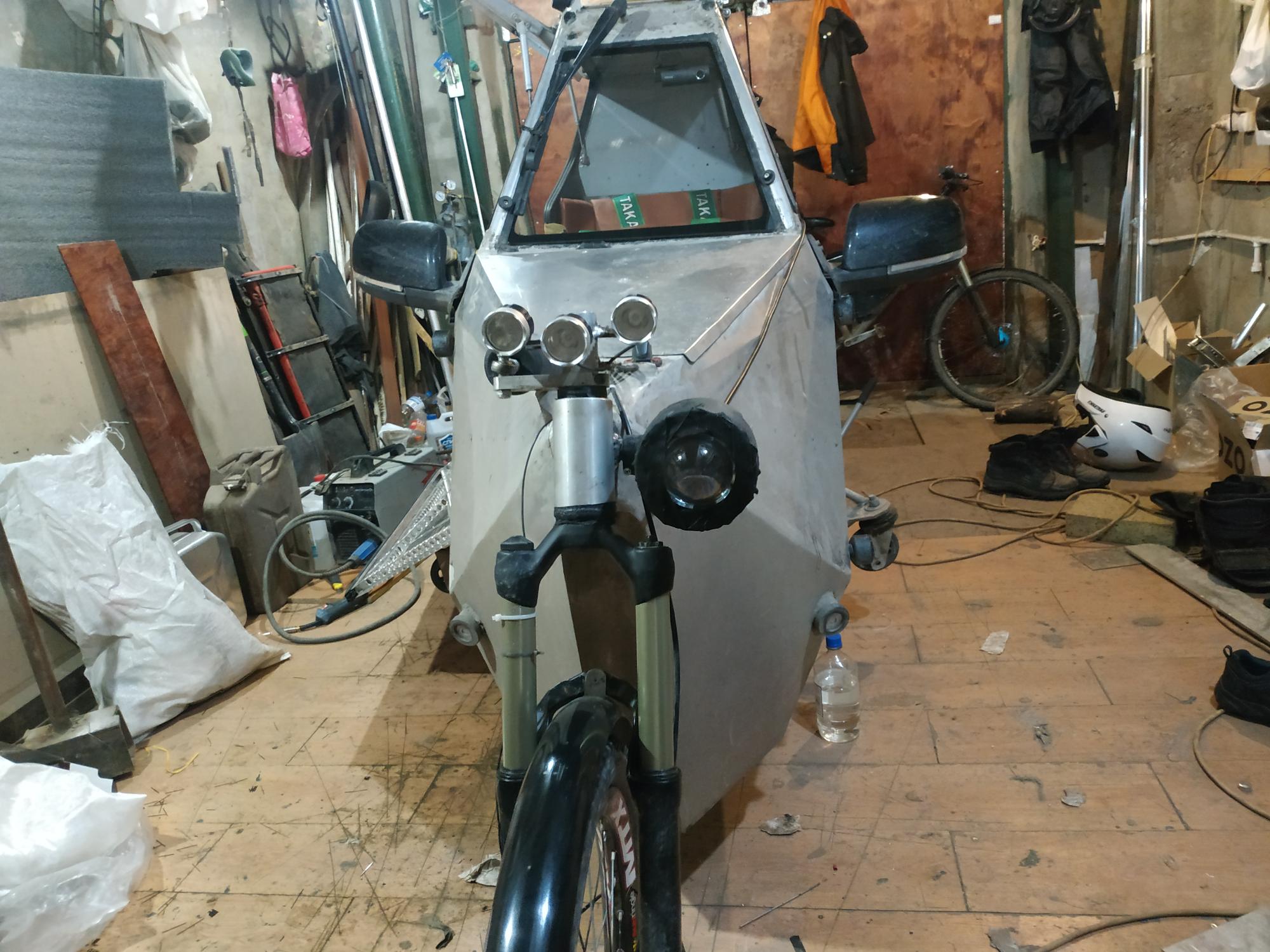 Плюс два тела и шмурдяк. И это все на вело вилке и колесе с тормозами которых и для велосипеда бывает маловато.