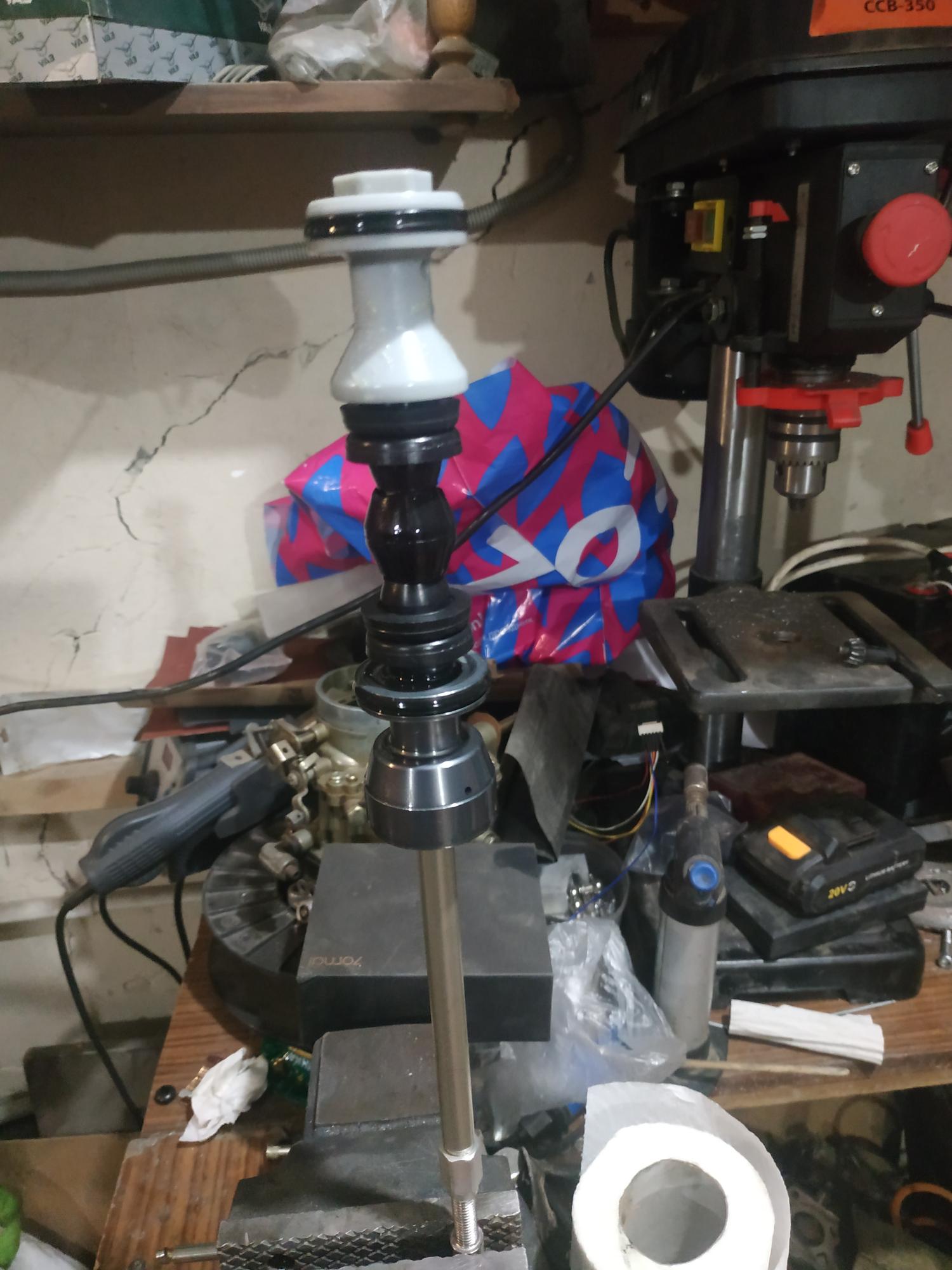 8. Проблема с длиной и ходом новой вилки. Новая вилка расчитана не на 26' а на  27,5' и на ход 180 мм против расчетного 130 мм. Следовательно она длиннее на 50 мм. Из-за этого после установки вилки перед поднялся, а крен на стоянке зашкаливал за 27 градусов, что грозило опрокидыванием при неблагоприятных обстоятельствах. Так совпало, что замена вилки произошла почти одновременно с установкой электропривода выпуска шасси, поэтому я толком не успел ощутить сразу все последствия (сказался новый старт из "ровного положения"). Первое время удавалось бороться с этим стравливанием давления вилки и увеличения сэга до 50-60%. Из-за этого вилка нормально не работала ни на ровном асфальте, ни на буграх. Для решения проблемы пришлось "подпортить вилку", а именно: в негативную пружину к родному дэмпферу отбоя были добавлены 4 втулки из упругой резины, которые ограничили отбой на 50 мм (т.е. сократили ход до 130-135мм).