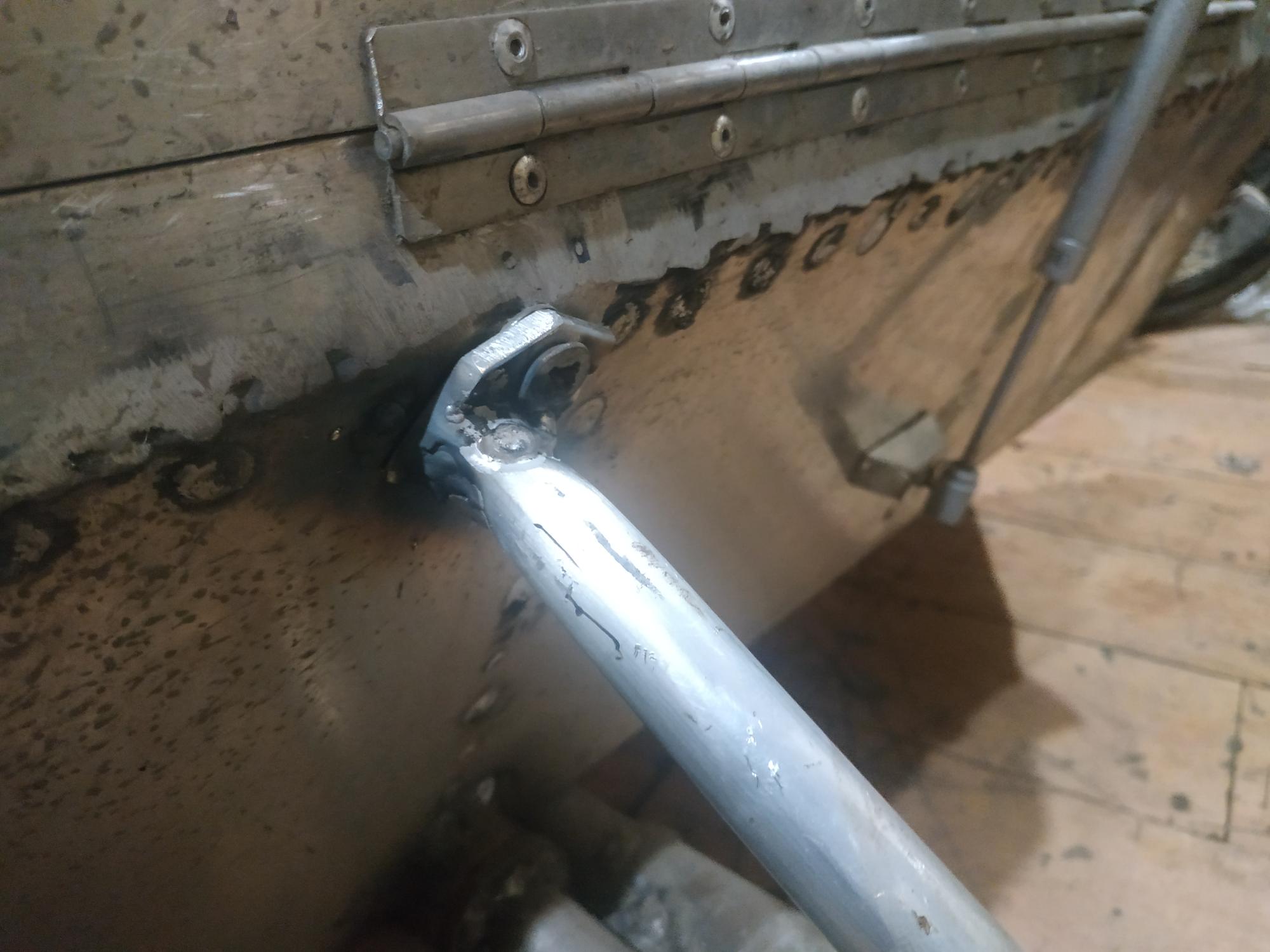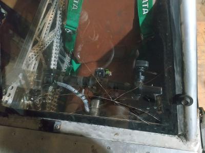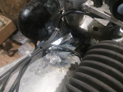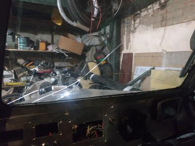 6. При выкатке аппарата из гаража переднее колесо попало во впадину между полом и крышкой подвала (как назло совпал размер по ширине) и, резко заблокировавшись в ней, повернулось. Из-за недостаточной прочности ограничителя поворота вилки (который сломался от такого удара) - штурвал резко повернулся вправо сильнее положенного и.......... разбил лобовое стекло :facepalm: