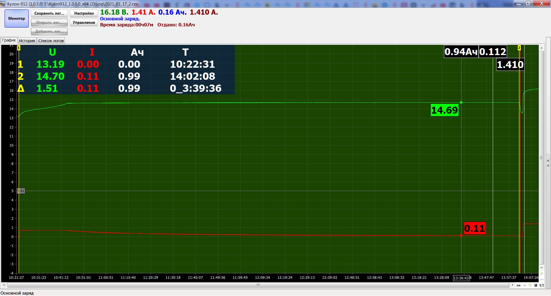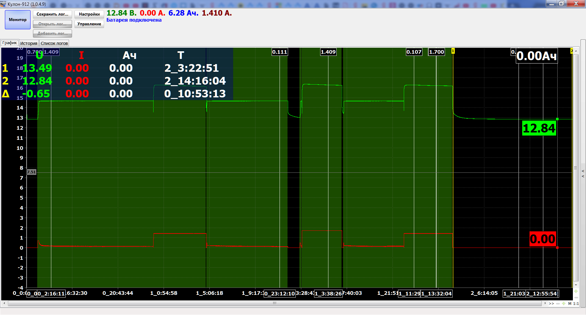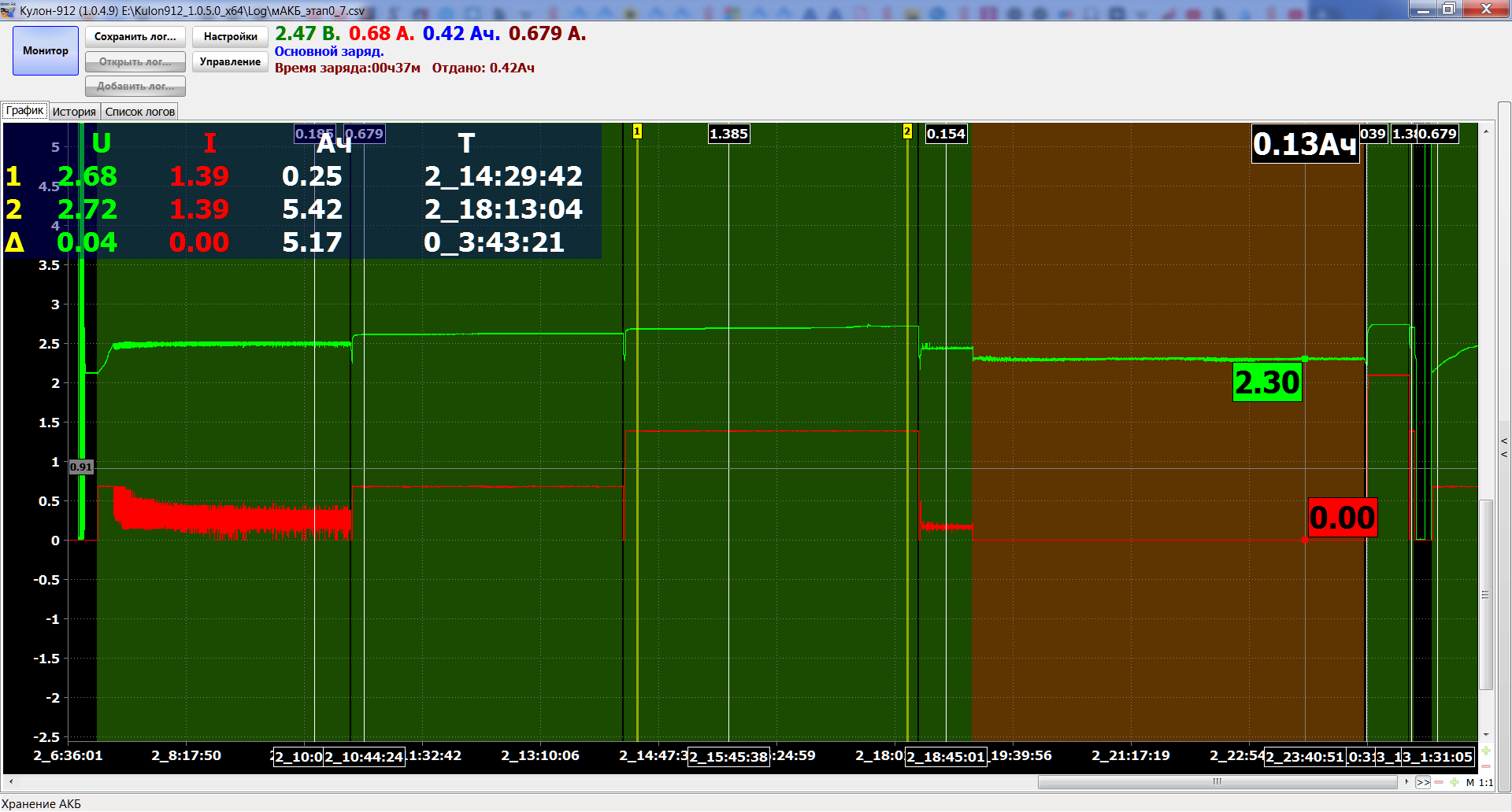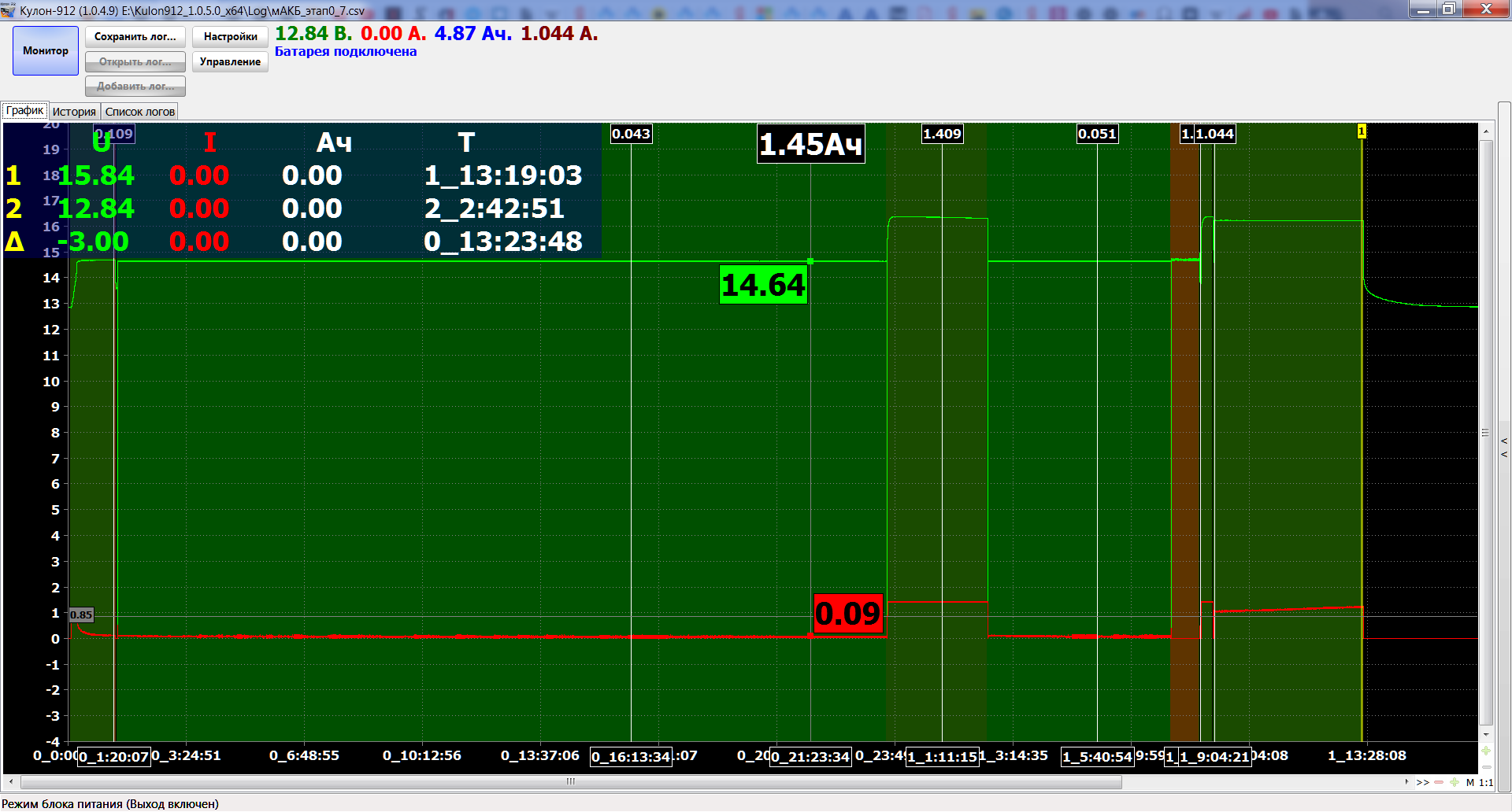Время заряда:06ч08м Отдано: 8.64Aч