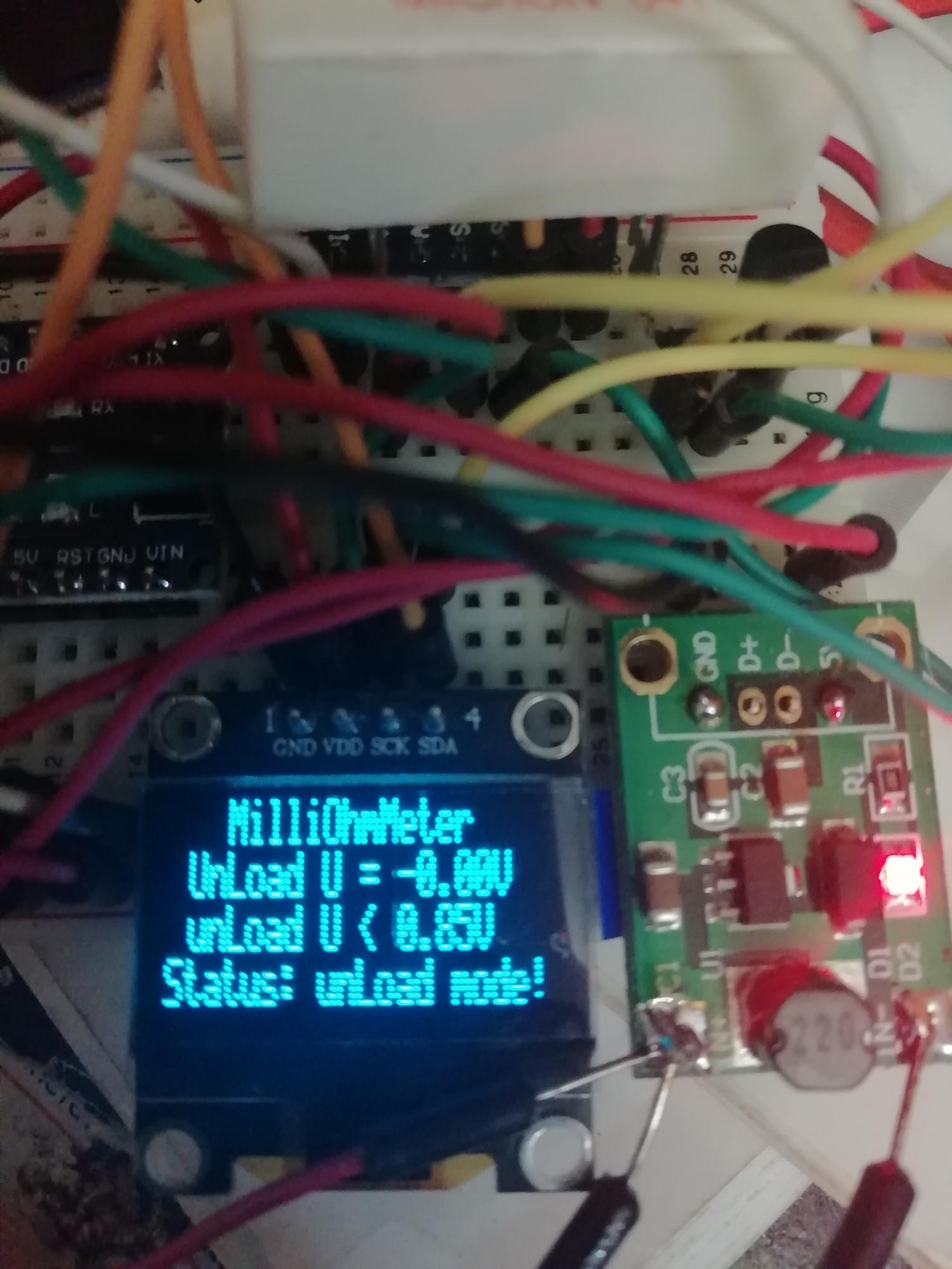 Миллиомметр тоже заработал, старые акки от телефона показали от 700 до 2500 Мом, но у меня собрано на макетке и провода тоненькие.