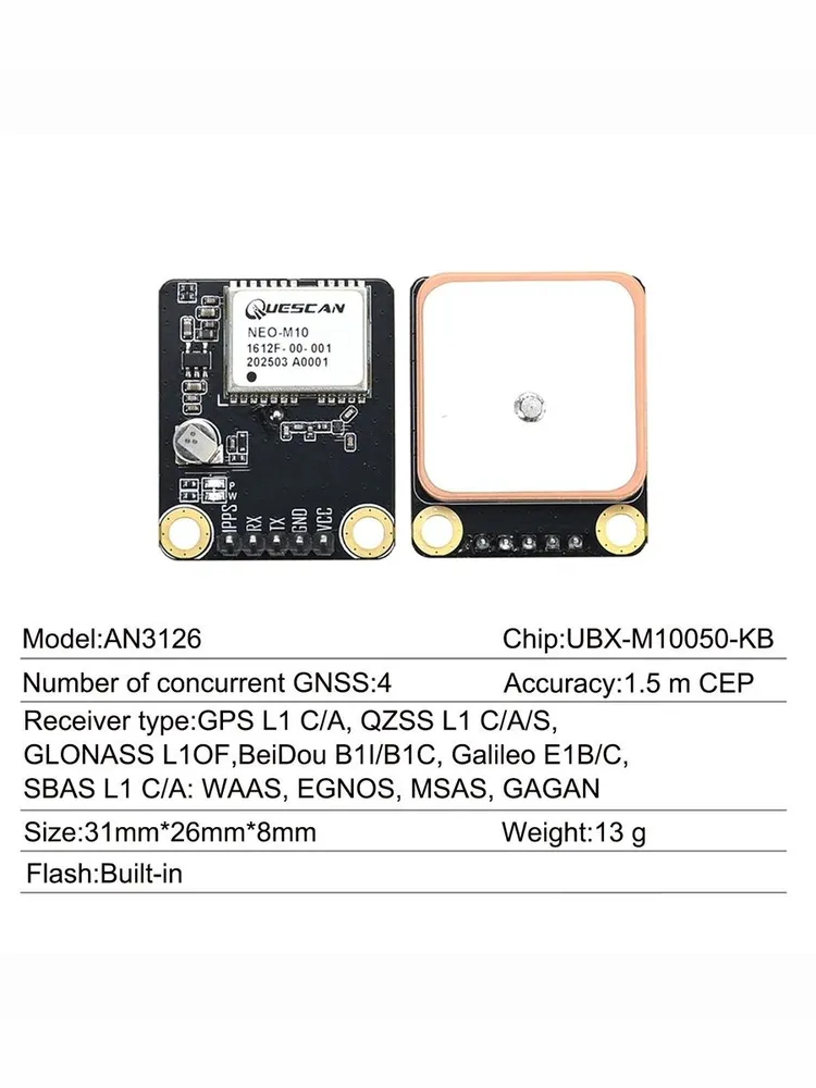Озадачился я тут измерением скорости. Сейчас разрабатываю новую панель управления и решил встроить в нее спидометр. Столкнулся с проблемой, что все отдельные спидометры для транспорта не показывают десятые доли. Десятые есть только у велокомпьютеров. Встраивать в панель лодки велокомпьютер, ну такое себе. Появилась идея, установить Ардуинку с ЖК дисплеем и приобрести вот такой модуль QUESCAN AN3126 UBX-M10050-KB M10 GPS ГЛОНАСС. Работает с 4-мя навигационными системами одновременно, может видеть до 40 спутников. На нем обещают точность измерения скорости 0,05 м/с. Цена сравнима со стоимостью среднего велокомпьютера.