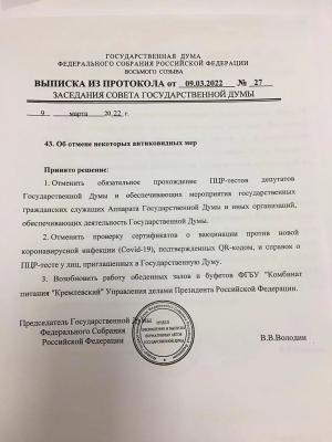 Володин отменил Ковид в Госдуме. Вот так вот. Всё просто. Вот так безславно заканчивается самый большой лохотрон XXI века.