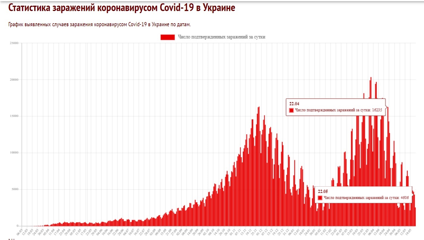 вчера 22 мая на Украине заразилось 4600 чел., а месяц назад 22 апреля 16000 чел.,  т.е. за один месяц произошло снижение заражаемости в 3, 5 раза - это крутое снижение !