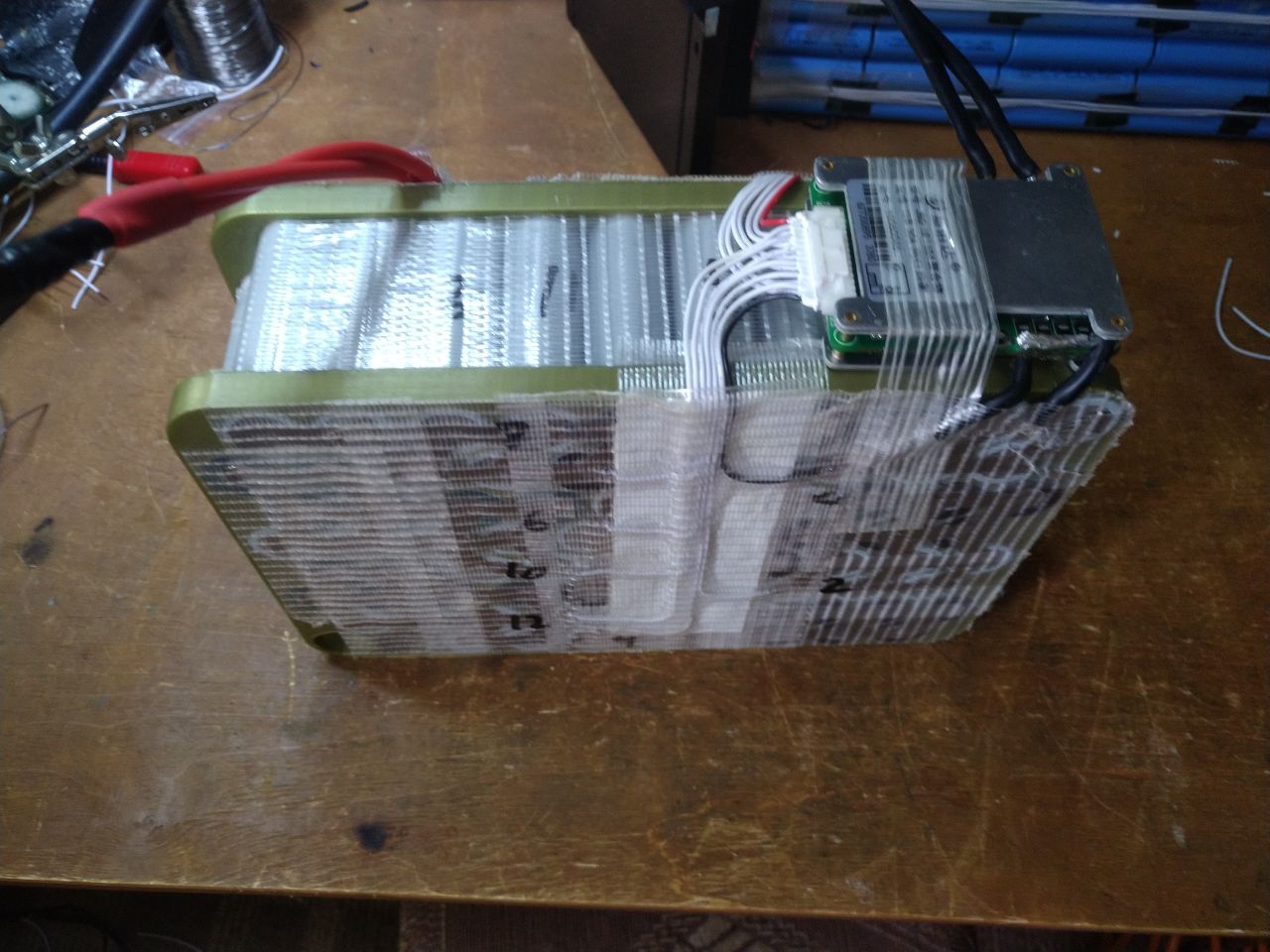 Также наконец-то доделал первую батарею. 13S6P, банки 21700, реальная ёмкость 26,6Ач. Батарею сделал вынимаемой, разъемы внутри ХТ150, снаружи водозащищенные SP21 4пин, по 2 пина на "+" и "-". Второй разъем заложен на случай параллельной второй батареи либо зарядки без отключения силового кабеля мотора, либо вообще какой-нибудь солнечной батареи, если захочется такого.
