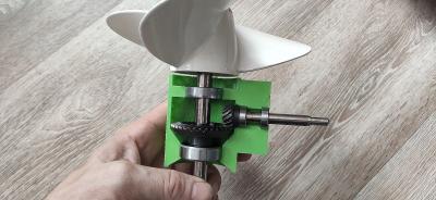 всем привет, сделал мотор с двигателем от гироскутера, на ноге от тримера с угловым редуктором от дрели 1:1 напечатал и протестил винты, отличный троллинговый мотор получился!