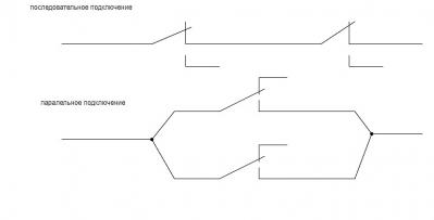 - нормально замкнут. При нажатии на кнопку переключателя один размыкается, другой замыкается с коммутационным. Смотрите схему и распиновку на самом переключателе.