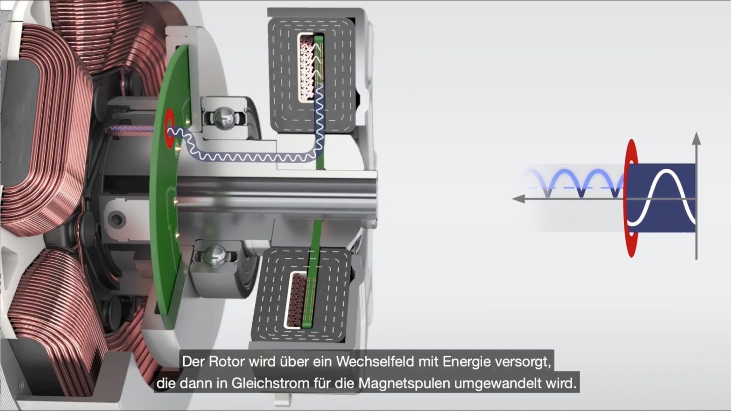 новаторство Mahle в том чтоб обьединить эти подходы: ротор работает синхронно (вращается с частотой вращения поля в статоре) а его обмотка накачивается током в отдельном индукторе, получается избавиться от проблемы с моментом на низах у асинхронника и от изнашиваемого(обслуживаемого) щеточного узла.