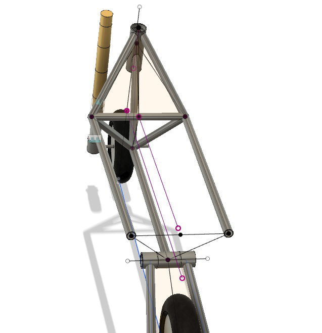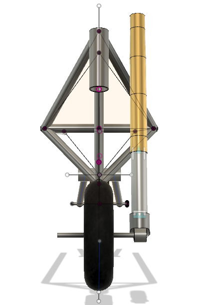 Можете на фото наблюдать пока не законченную модель, но идея думаю уже ясна- трубчатый пространственный каркас. Пока не дорисовываю и не замыкаю все, тк постоянно какие-то перестановки и переделки узлов (много заморочи было в шарниром маятника, тк к нему высокие требования по живучести)
