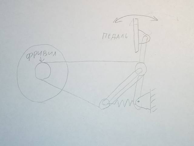 Вот схема .  Изображено заднее колесо с тянущим фривилом трос объединяющий фрифил и два шкива на подшипниках обычных.