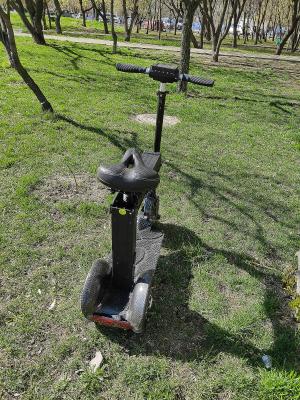 Он единственный из всех девайсов имеющий 48вольтовую батарейку. У остальных 36. Очень удачный мотор и рекуп. Я практически никогда не пользуюсь штатными тормозами, ибо рекуп настолько хорош, что даже приятно подтормаживать и тормозить. Мотор закрыт коробом, на который ставится еще один короб-сидушка для перевозки пассажира. Откидывающиеся подножки дают  возможность сзади сидеть довольно плотно и тепло. Для этого есть утепленная шубой пристегивающаяся накидка. Доча тащится. Мы ездим из школы в музыкалку или из школы домой по большому кругу(парк, река) в хорошую погоду.