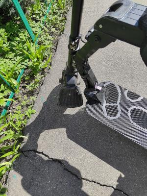 И переводить на 48 вольт нет смысла, еще мощнее и быстрее не больно нужен.  Украсть норовят в любом месте.. И я им очень, тем не менее, доволен, рабочая лошадка, с которой меня пускают в метро, не заставляя складывать, так как он весьма компактен.  А уж как он привлекает внимание, это же полный нестандарт. Куга в нем не узнается совсем. Тормоза рекуперативные хороши, но слегка резковаты, потому давлю плавно. Клещи на всех самокатах настроены так, чтобы не блокировали переднее колесо. Так что с тормозами, вроде как, порядок.