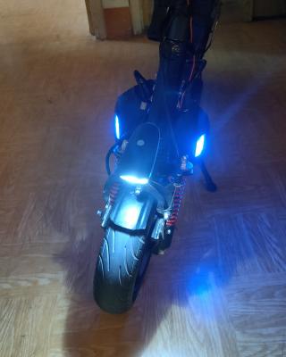 Это самый мягкий самокат из всех. То бишь и передний и задний амортизатор работают отменно. Я на нем не катаюсь, ввиду наличия полноприводных, но если бывает, то очень приятно. МК довольно тяговитое и выползает по скорости за 30км\час. Магниты и статор 30мм. Очень плавный ход. И интересный момент, у него спортивный рык. Реальный и спортивный. Звук прям завораживает.  Возможно поэтому, сын таки предпочитает его, а не дочкин полнопривод, хотя тот существенно мощнее. Вот только у него у единственного нет клещевых тормозов(редкий клещ подходит на такой размер), но есть рекуп и заднее крыло. Этого пока хватает.  Ну и 2 акума. На 30 банок в деке и быстросъем на гусе от гирика на 20 банок.