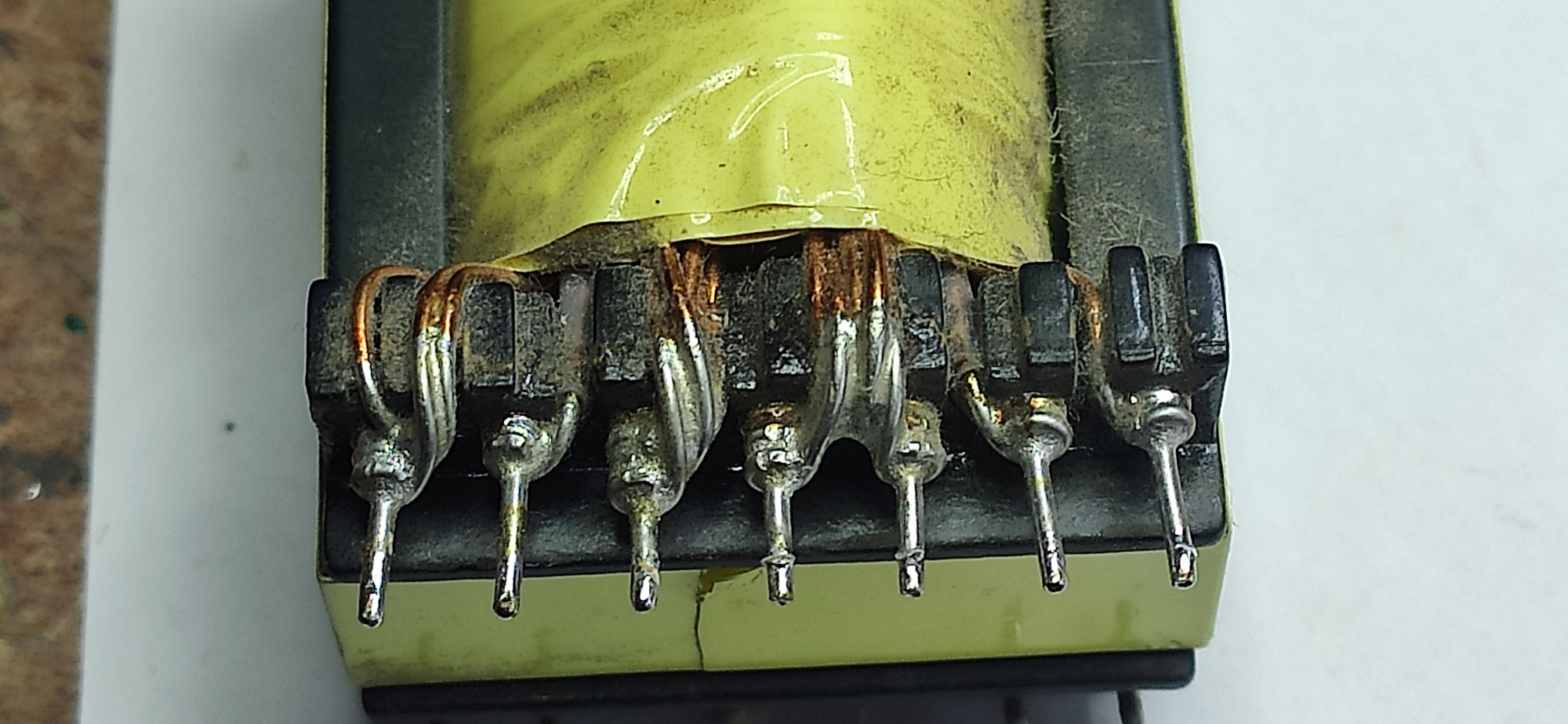 Обмотка 12В по шильдику на 17А, она намотана в 2 провода, я так и оставил в 2 ( хотя получается что и 1 провод 5 А потянет). Обмотка 5 В намотана в 6 проводов, вот я распушил все обмотки и нашел по парно те которые выходят из обмотки в одном месте, то есть намотанные в 2 провода сразу, и потом их последовательно все соединил, на фото видно это безобразие во время испытания.