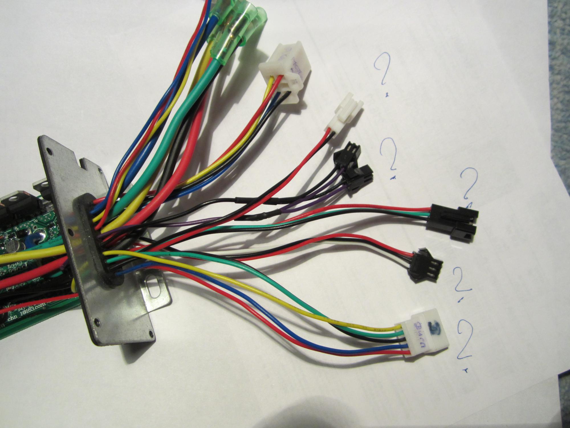спасибо что ответили, чел. который продал  не очень утвердительно, т.к не проверял, рассказал -1 (ЧЕР. КРАС.)- тормоз или на фары, 2 сдвоенный (чер. фиол.) -на ручки тормозов, 3 (ч.з.кр.) -газ. 4 (б.ч.кр)-пас. 5(5 пиновый) -на дисплей. И 0,который не попал в первое фото (ж.кр.с) -якобы на датчик скорости на спицах..., Тестер есть, но подключать пока некуда, сгорел мажик пай-2 при обрыве кабеля из м-к  и там другие разъемы. пока их переделываю, с помощью вас и вашего форума. Написал в теме мажик пай-2, на что голден мотор попросил привести вел. в Москву, чтоб разобраться.)))  Да еще, как с распиновками на плато (рекуперация, обучение и т.д.)