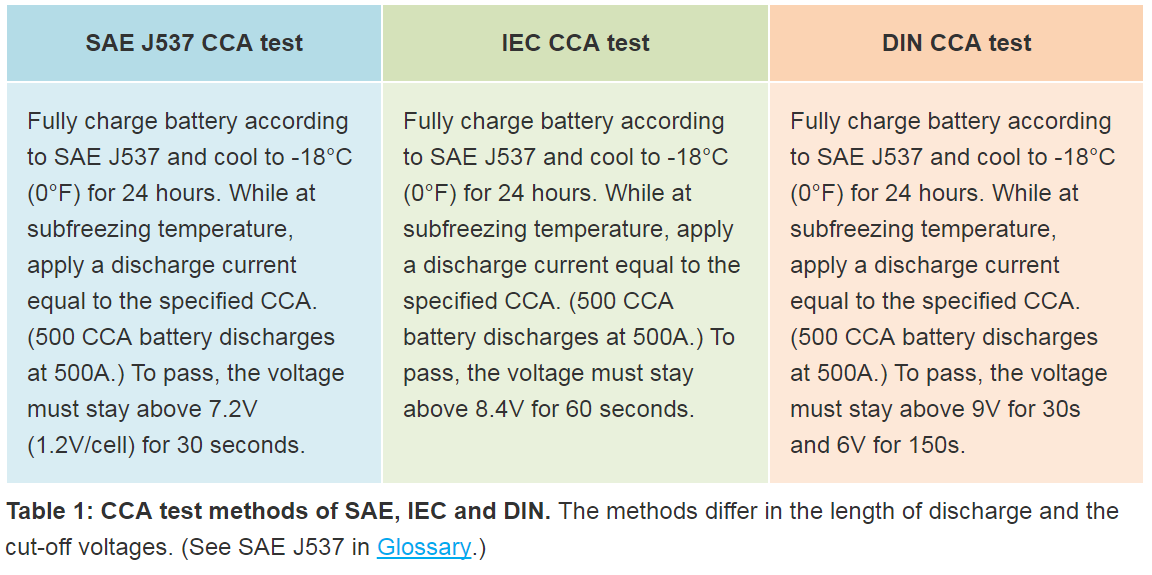 Тама по ссылке основные методики определения SAE (Society of Automotive Engineers) J537 CCA test - Американский стандарт, IEC (International Electrotechnical Commission) CCA test - международный, DIN (Deutsches Institut für Normung e.V.) CCA test - немецкий. Выбирай на свой вкус и цвет  :-) ГОСТ в большинстве случаев - переведенный DIN или IEC