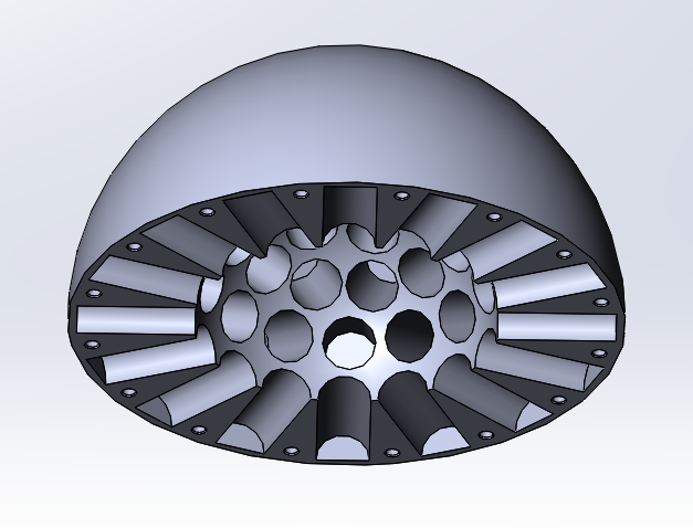 Суммарная энергия нулевых колебаний конечного объёма физического вакуума огромна. Это заявление не противоречит фундаментальным законам сохранения энергии. В нашем, особом случае, в условиях когерентного состояния твёрдой материи (элементов массы ротора) "заказанную" нами часть энергии устройство автоматически преобразует в механическую, а затем и в электрическую (магниты ротора наводят удвоенную ЭДС в катушках статора). Размер закрытой системы увеличивается до голографического горизонта, поэтому говорить о КПД не корректно. Это теория, точнее гипотеза, теорией Голографический Принцип станет, если мы получим возможность конвертировать часть энергии вакуума в электрическую. По сути, имеем порочный замкнутый круг. Нужно сделать прототип, и тогда этот круг будет разорван. На фото половинка ротора
