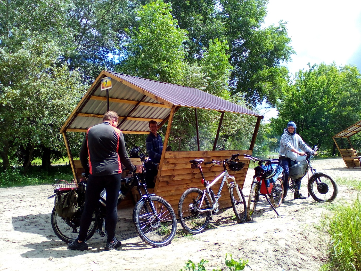 Хорошо посидели, можно сказать экспресс-шашлык   :dance:  быстро нашли беседку, пока одни затаривались, другие запускали мангал. Неплохое место для встреч. Вопреки ГИСМЕТЕО, который обещал нам дождь утром и днем, было солнечно "сухо и комфортно". Парк Дружбы Народов и Труханов патрулируют велополицейские, сказали мне что их 10 челолвек, велы у них малоизвестного у нас производителя. Я только заметил что дисковые тормоза Тектро.
