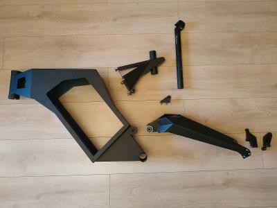 Ну что, время пришло. Замена рамы на телепорт лайт 150мм (~9.5кг), замена контроллера (термоядерный, 24f), замена фазных проводов мотора (посыпалась изоляция да и в целом пора потолще проложить), замена батареи (по прикидкам влезет 22s20p теслобанок, ~4.8квтч). На данный момент все компоненты, кроме последнего, выполнены.