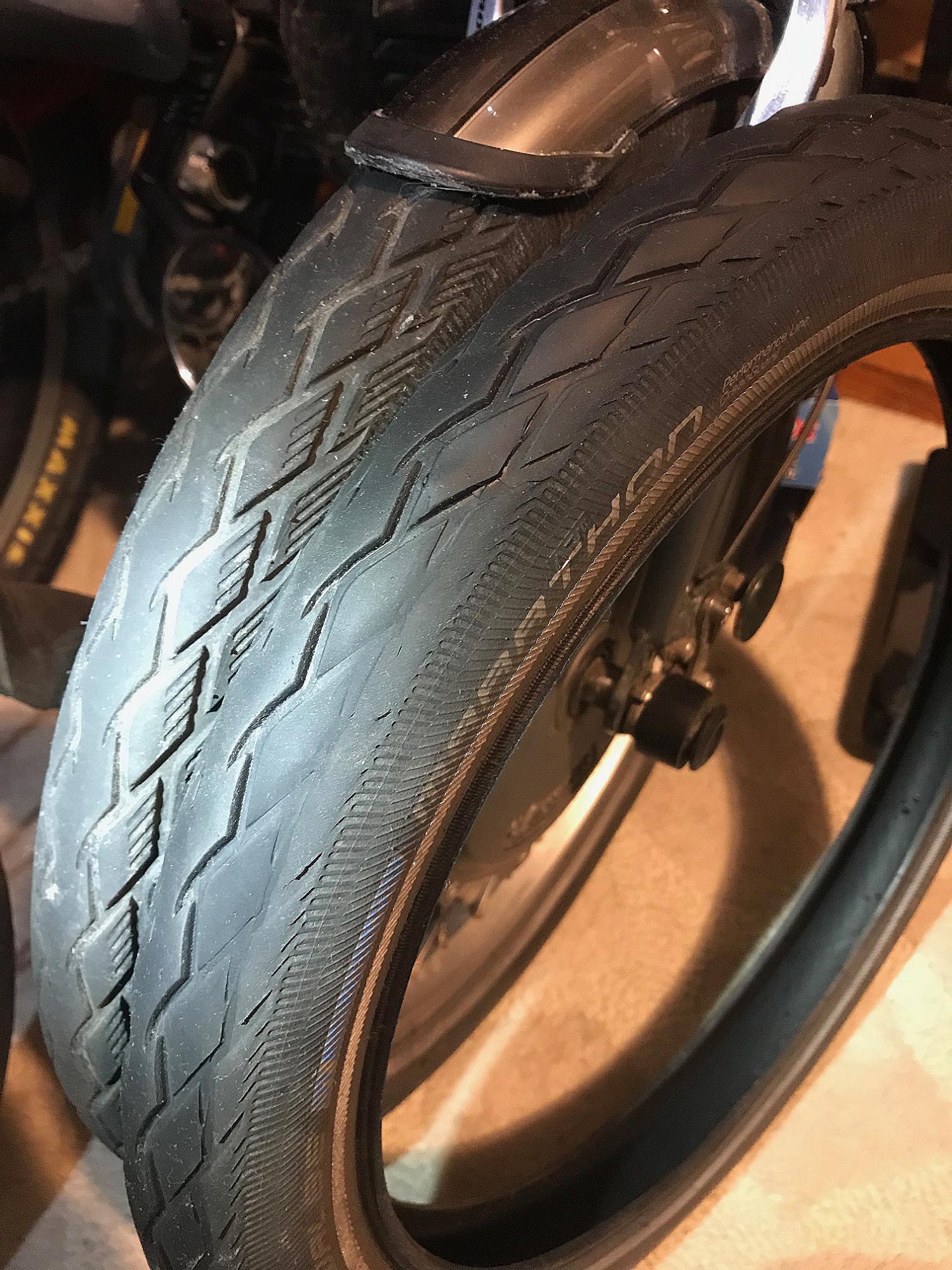 Вчера заменил заднюю покрышку на маленьком дахоне(16" колёса) после 2.5тыс пробега.