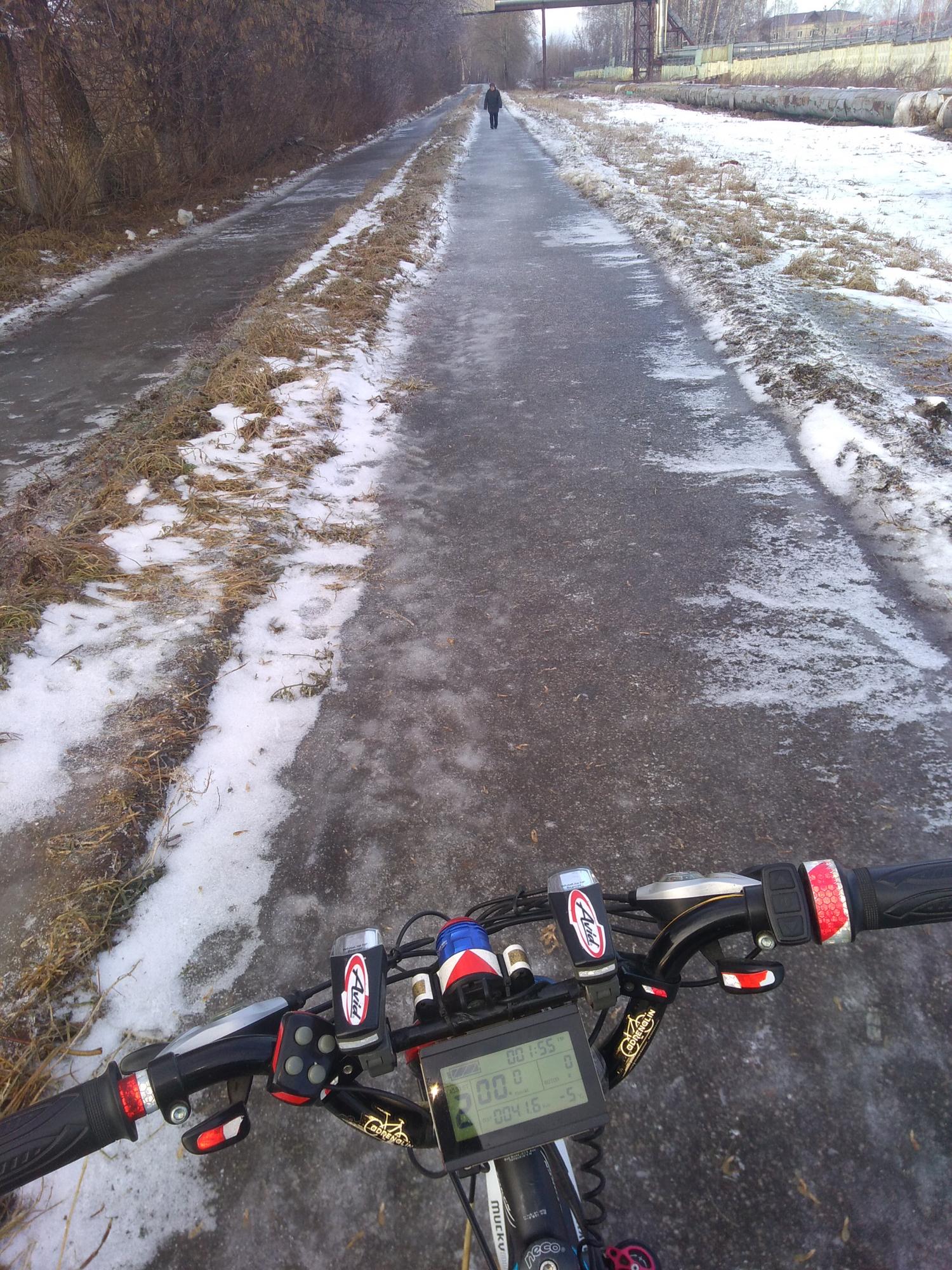 По таким дорогам никакие фэтбайковское покрышки не помогут: будешь, как корова на льду!