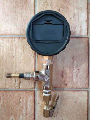 Почему пишу "вокруг да около"? Потому, что притычные эти манометры, таки да, стравливают много свистящего и шипящего давления, пока точно и плотно не приложишь и не прижмешь сиё приобретение соосно до трубки соска камеры.