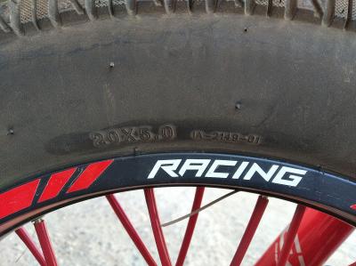 Я вроде нашёл обода на 100-ку, хочу их попробовать, всё-таки я рассчитывал на 5 дюймов, а она в диаметр вся ушла... Колесо стало 24-ым. Тоже прикольно конечно, скорость добавит).
