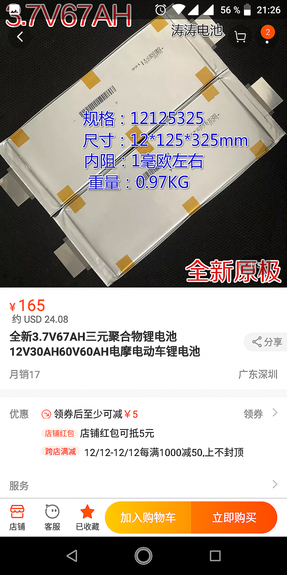 [user]Karelia[/user], да, паралельно немножно больше выйдет, чем меньше ток, тем меньше потери и банки отдадут немножно больше ёмкости, а ещё с учетом того, что будет немножко меньше просадка, больше энергии отдаст при той же ёмкости. Ну а если не спешить, на 25кмч хватит и одной батареи на 15ач, ещё и остаток небольшой будет.