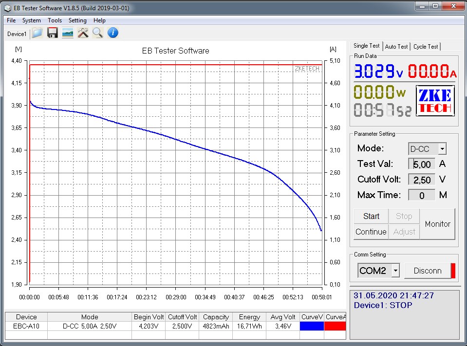 При тех же параметрах разряда показывает  4,55 А/ч.
