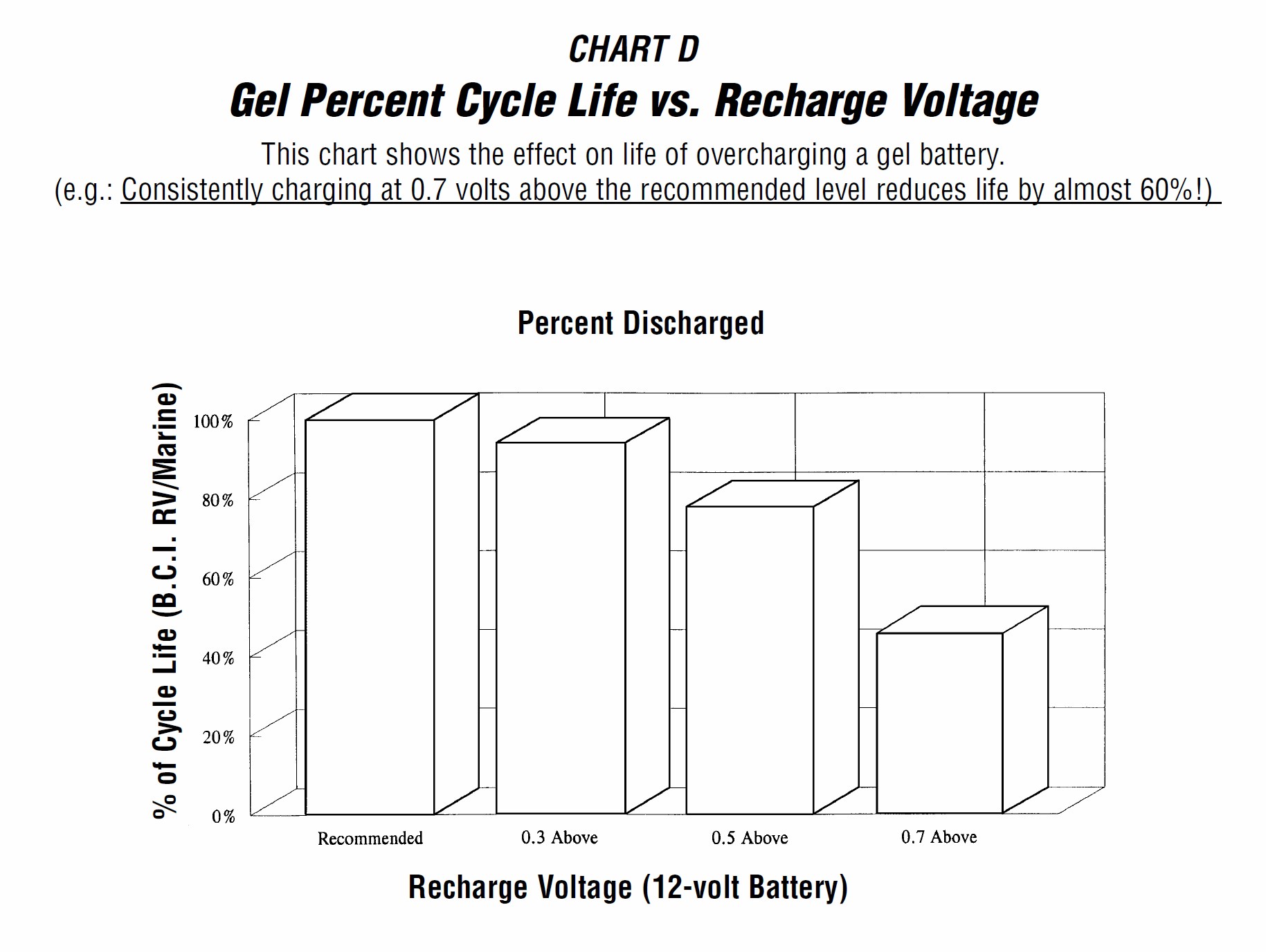 Наглядная картинка про важность правильного напряжения заряда для GEL
