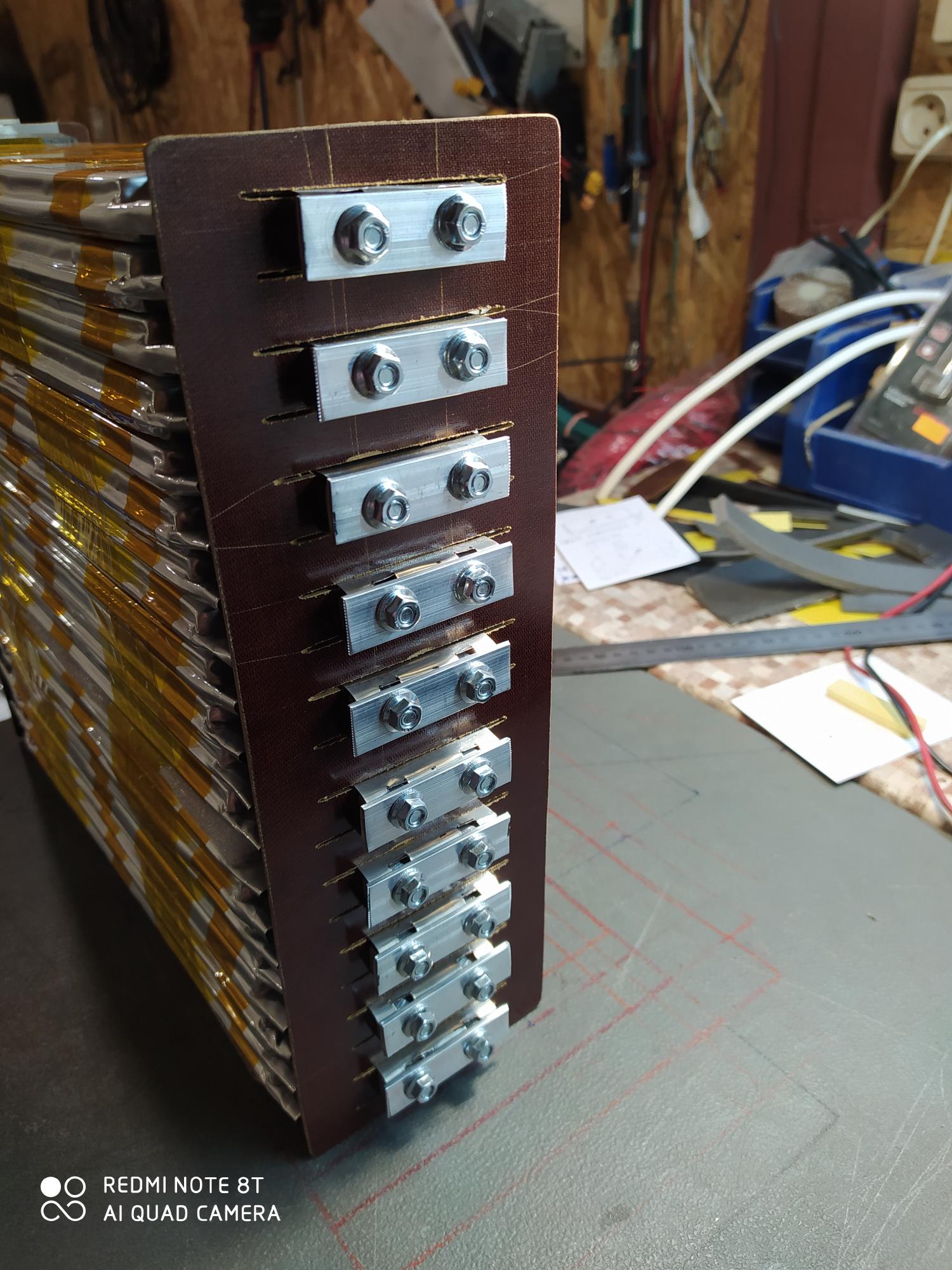 Мой вариант болтовой сборки батареи на пакетах 60ач.